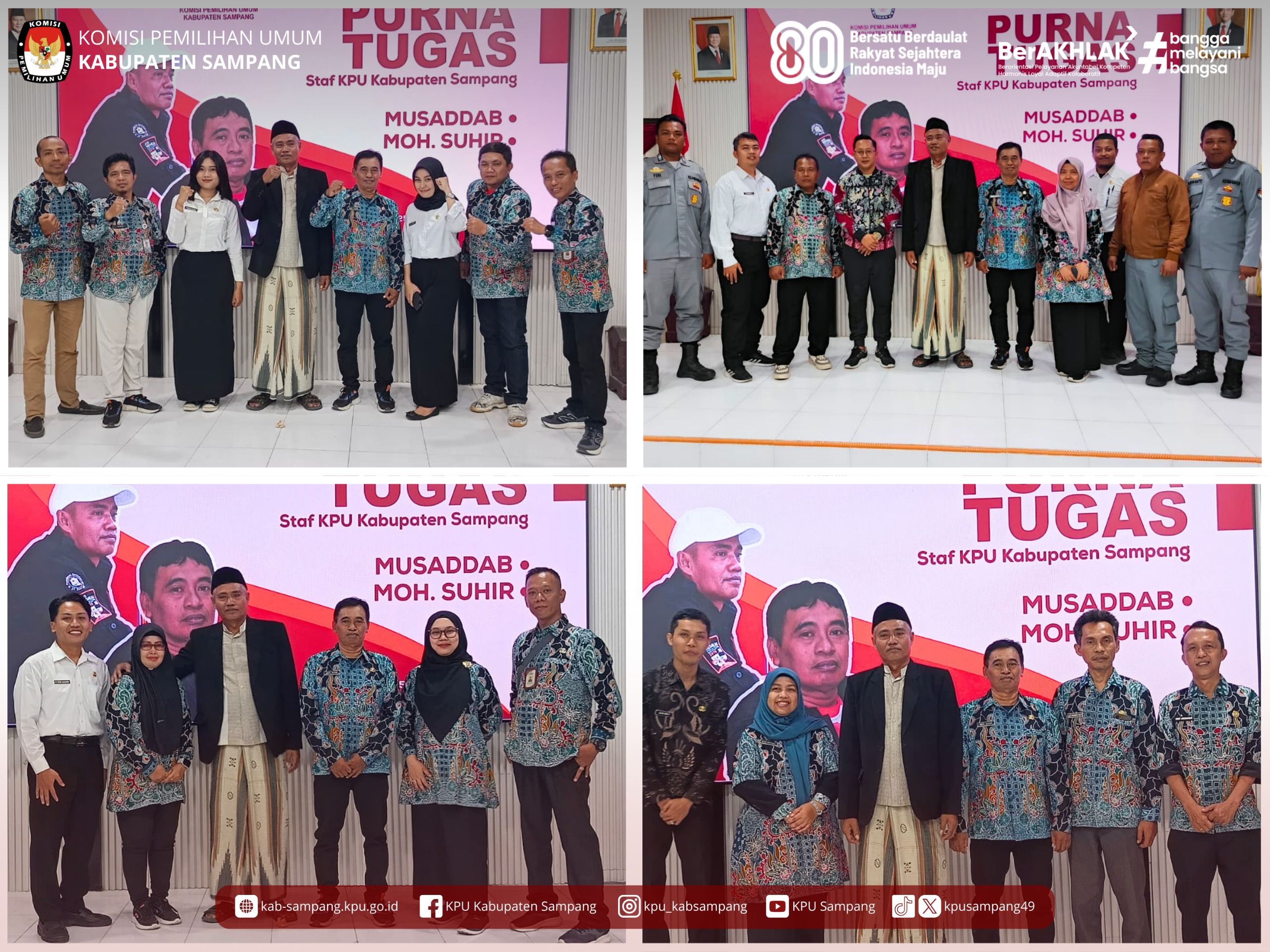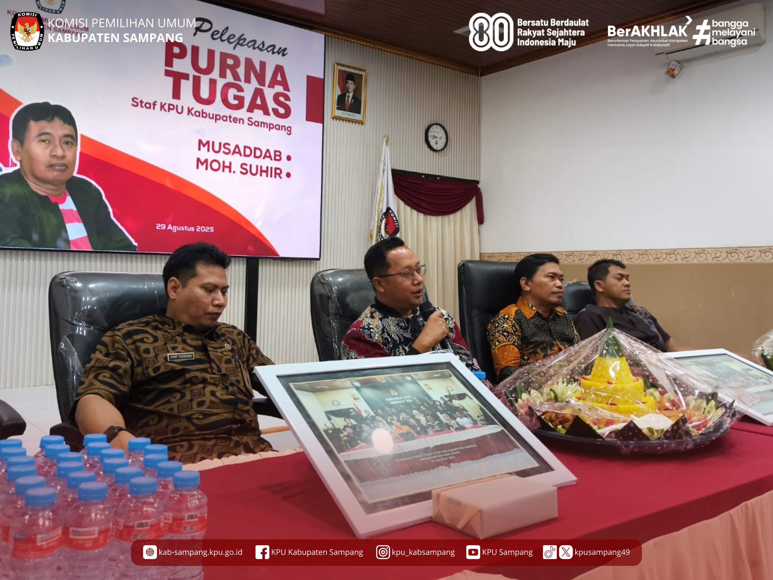#TemanPemilih.... hari ini Jum'at, 29 Agustus 2025, KPU Kabupaten Sampang melakukan acara Pelepasan Purna Tugas Staff KPU Kabupaten Sampang, yaitu Bapak Musaddab dan Bapak Suhir.