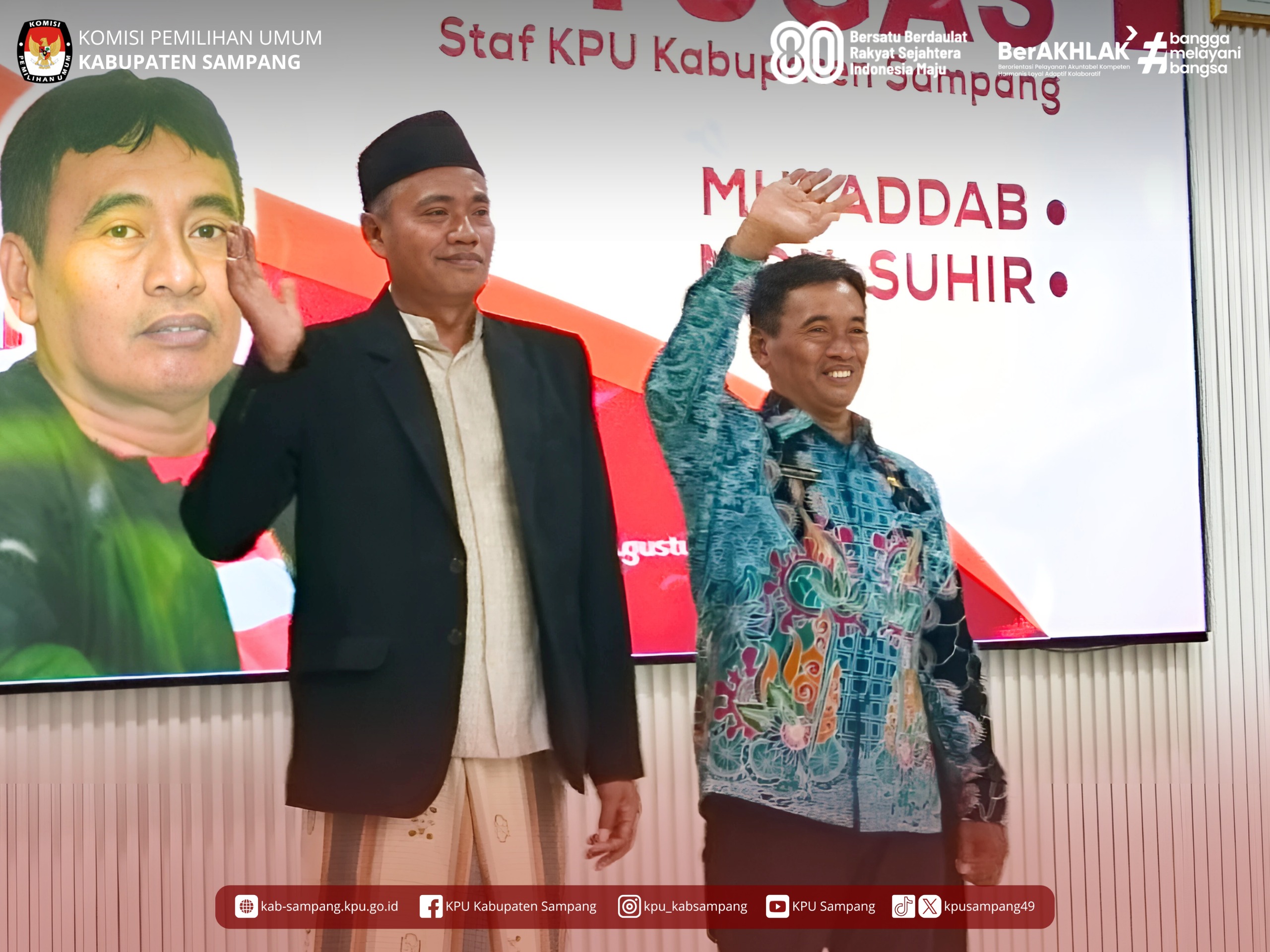 Segenap keluarga besar KPU Kabupaten Sampang mengucapkan terima kasih atas dedikasi dan kerja keras yang telah diberikan oleh Bapak Musaddab dan Bapak Suhir selama ini.