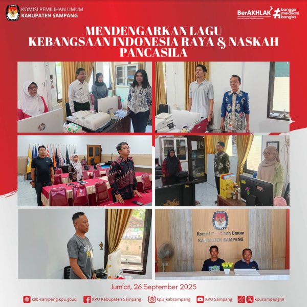 #TemanPemilih.... hari ini Jum'at, 26 September 2025, KPU Kabupaten Sampang mendengarkan Lagu Kebangsaan Indonesia Raya dan Naskah Pancasila di Kantor KPU Kabupaten Sampang