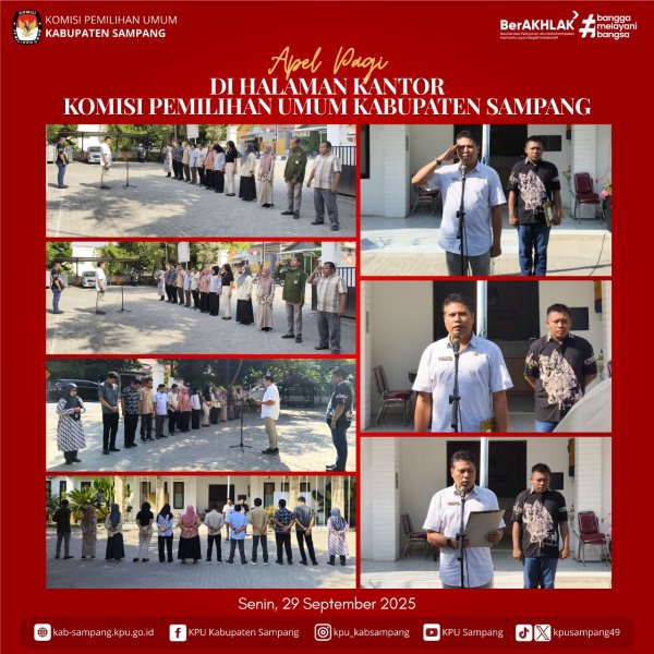 #TemanPemilih..... Hari ini, Senin, 29 September 2025, KPU Kabupaten Sampang melaksanakan kegiatan Apel Pagi di halaman kantor KPU Kabupaten Sampang.
