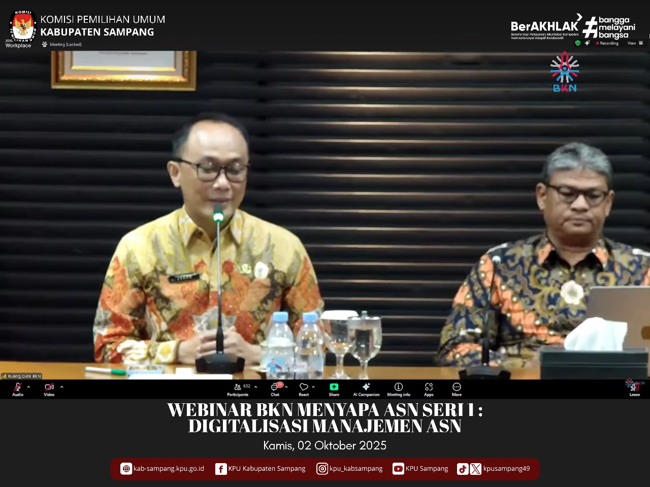 #TemanPemilih.... Hari ini Kamis, 02 Oktober 2025, KPU Kabupaten Sampang mengikuti Webinar BKN Menyapa ASN Seri 1 : “Digitalisasi Manajemen ASN” melalui Zoom Meeting di Aula KPU Kabupaten Sampang.