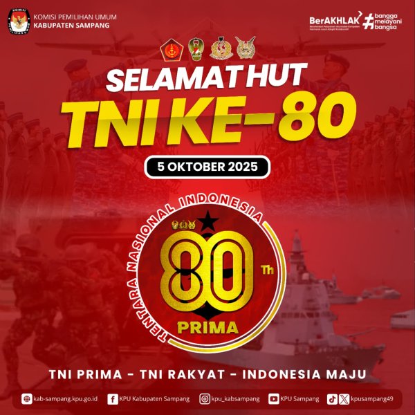 #TemanPemilih.... Segenap Keluarga Besar KPU Kabupaten Sampang Mengucapkan Selamat Hari Ulang Tahun TNI ke-80, 05 Oktober 2025.
