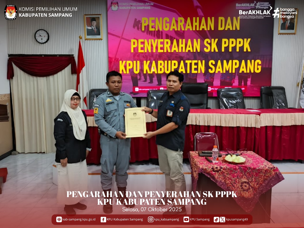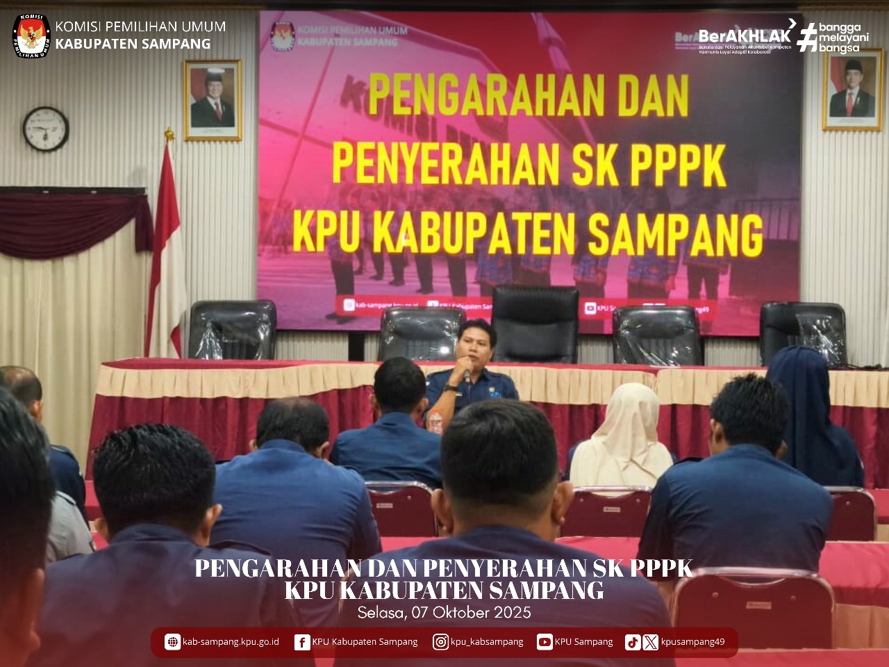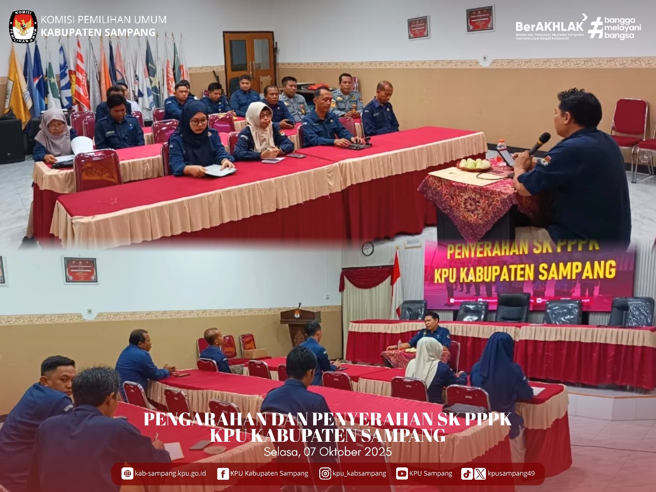 #TemanPemilih.... Hari ini, Selasa, 07 Oktober 2025, Sekretaris KPU Kabupaten Sampang, Bapak H. Arief Yudoyono, SP, M.SI, melakukan Pengarahan dan Penyerahan SK PPPK Pegawai KPU Kabupaten Sampang. Pengarahan dan Penyerahan SK PPPK ini dilakukan secara langsung di Aula KPU Kabupaten Sampang.