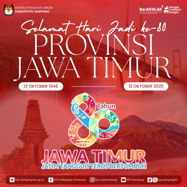 #TemanPemilih.... Segenap Keluarga Besar KPU Kabupaten Sampang Mengucapkan Selamat Hari Jadi ke-80 Provinsi Jawa Timur, 12 Oktober 2025.