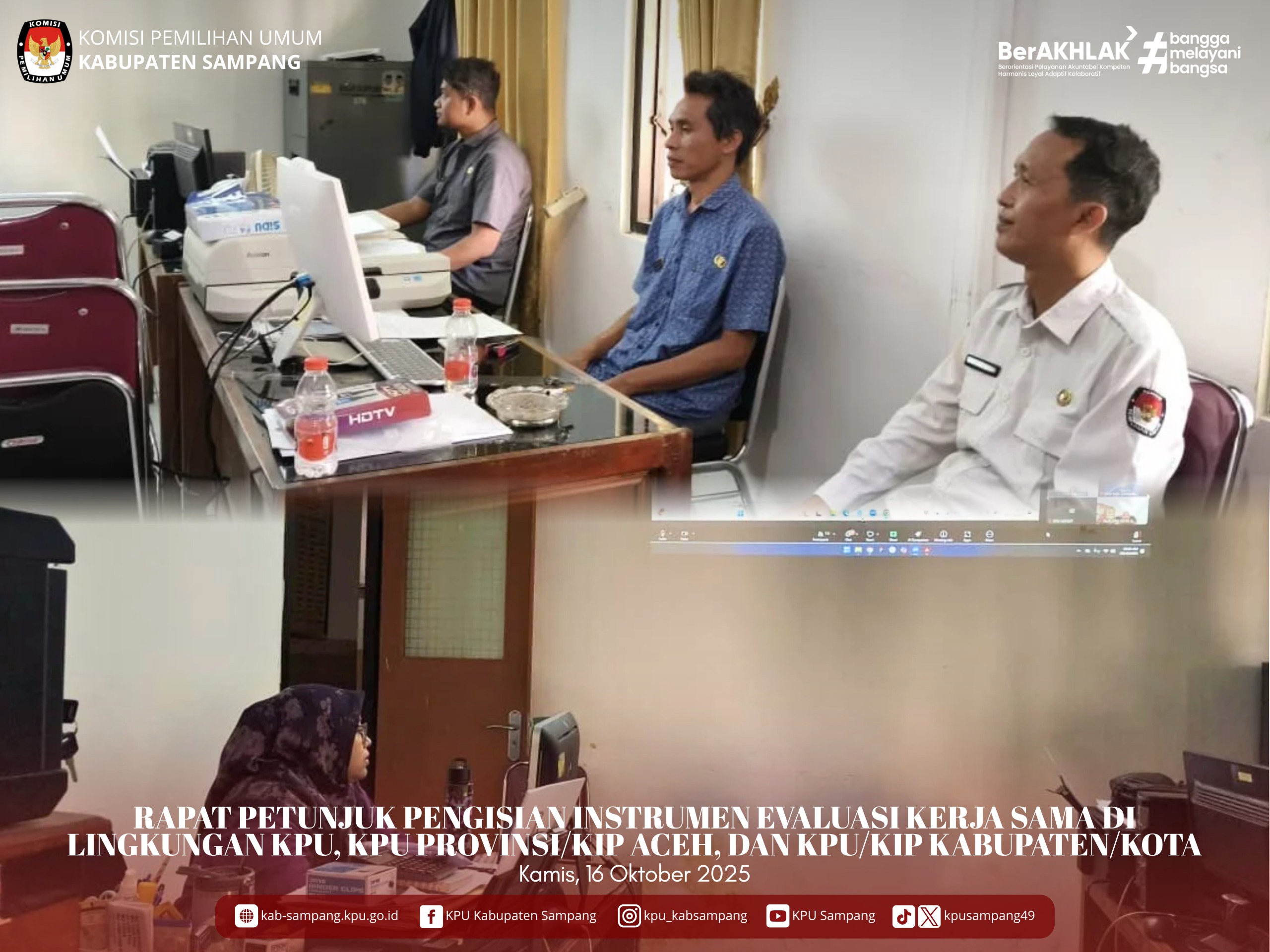 #TemanPemilih.... Hari ini Kamis, 16 Oktober 2025, KPU Kabupaten Sampang Mengikuti Rapat Petunjuk Pengisian Instrumen Evaluasi Kerja Sama di Lingkungan KPU, KPU Provinsi/KIP Aceh, KPU/KIP Kabupaten/Kota secara daring melalui Zoom Meeting di Kantor KPU Kabupaten Sampang.