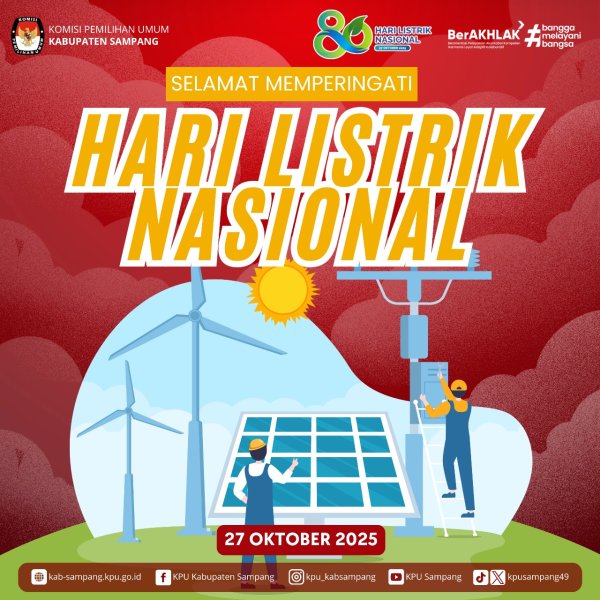 #TemanPemilih.... Segenap Keluarga Besar KPU Kabupaten Sampang Mengucapkan Selamat Hari Listrik Nasional, 27 Oktober 2025.