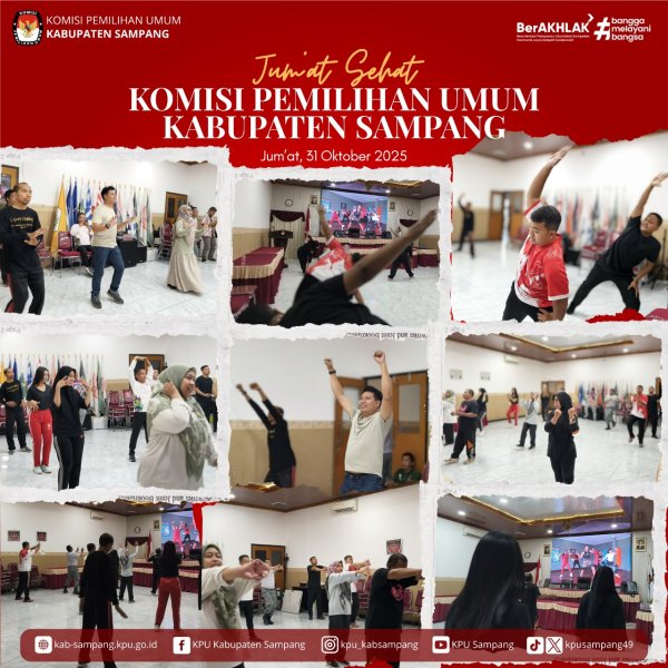 #TemanPemilih.... Hari ini Jum'at, 31 Oktober 2025, KPU Kabupaten Sampang melakukan Giat Jum'at Sehat Rutin berupa Senam Pagi di Aula Kantor KPU Kabupaten Sampang.