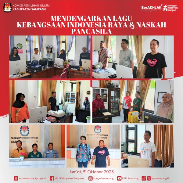 #TemanPemilih.... hari ini Jum'at, 31 Oktober 2025, KPU Kabupaten Sampang mendengarkan Lagu Kebangsaan Indonesia Raya dan Naskah Pancasila di Kantor KPU Kabupaten Sampang