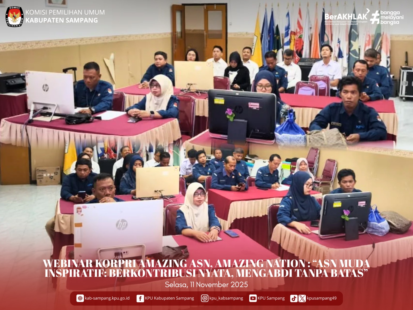 #TemanPemilih.... Hari ini Selasa, 11 November 2025, KPU Kabupaten Sampang mengikuti Webinar KORPRI Menyapa ASN dengan tema: Amazing ASN, Amazing Nation : "ASN Muda Inspiratif : Berkontribusi Nyata, Mengabdi Tanpa Batas" melalui Zoom Meeting di Aula Kantor KPU Kabupaten Sampang.