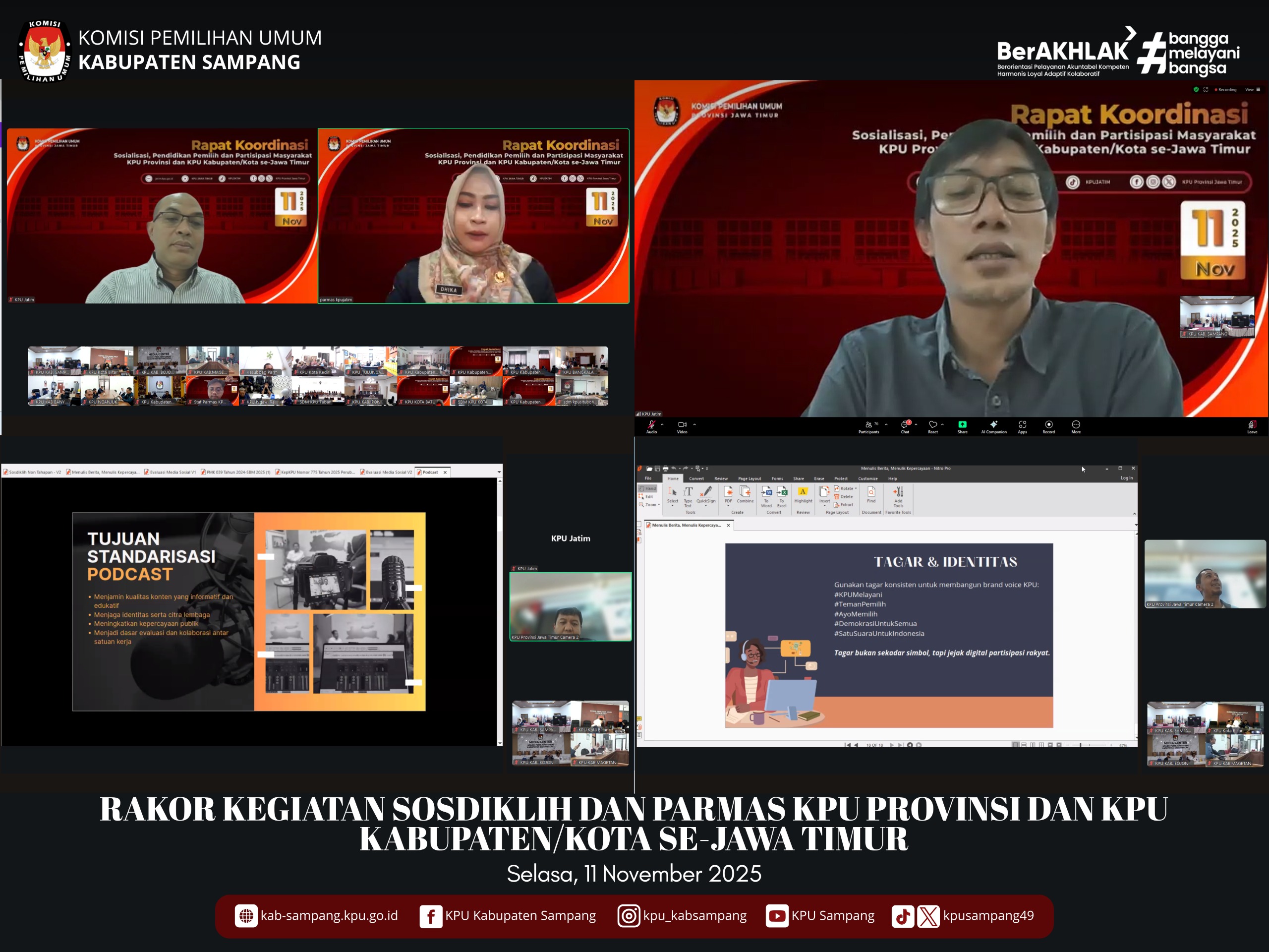 #TemanPemilih.... Hari ini Selasa, 11 November 2025, KPU Kabupaten Sampang mengikuti Rakor Kegiatan Sosdiklih dan Parmas KPU Provinsi dan KPU Kabupaten/Kota se-Jawa Timur secara daring melalui Zoom Meeting di Aula Kantor KPU Kabupaten Sampang.