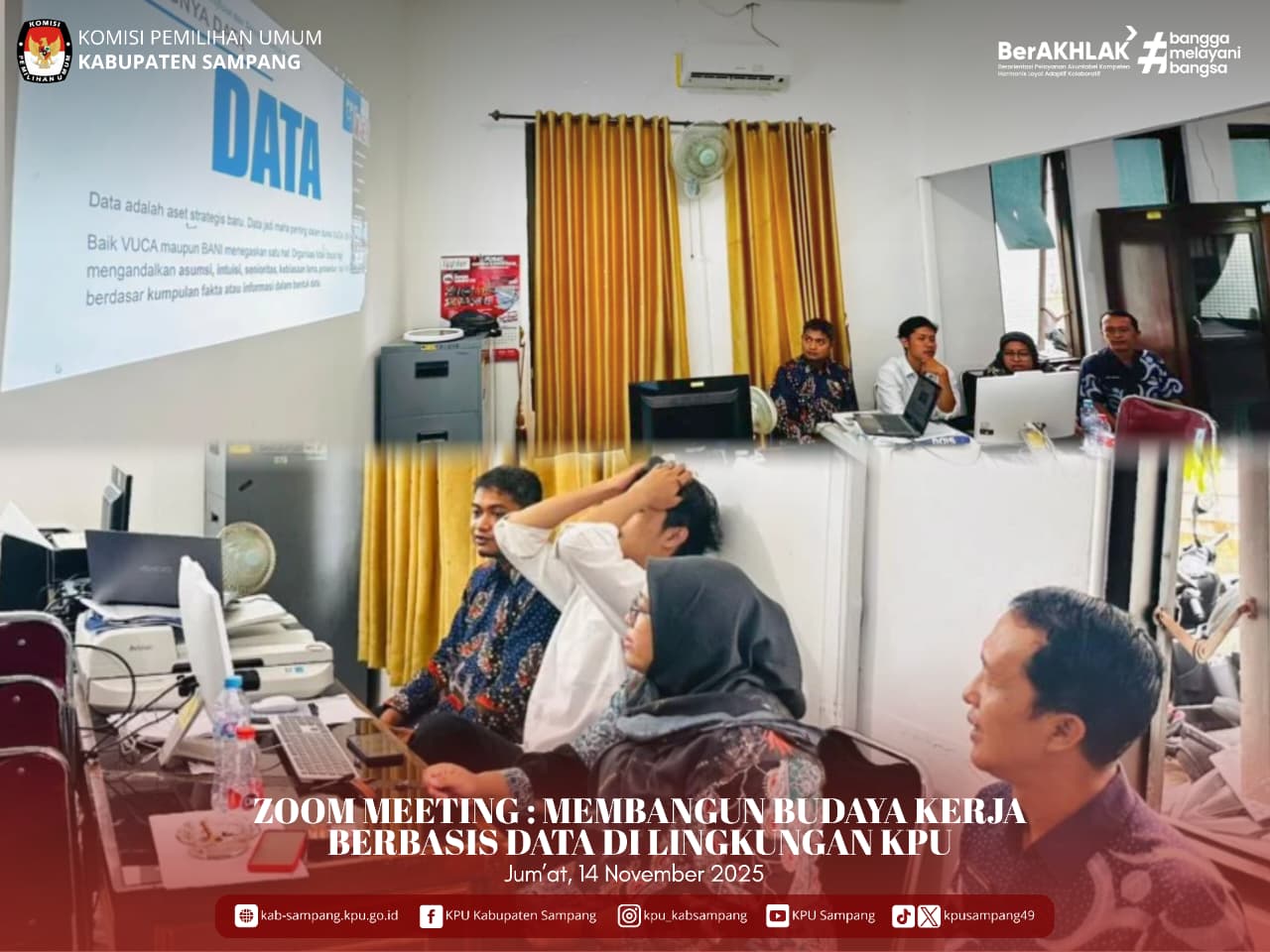 #TemanPemilih.... Hari ini Jum'at, 14 November 2025, KPU Kabupaten Sampang mengikuti Zoom Meeting yang membahas mengenai Membangun Budaya Kerja Berbasis Data di Lingkungan KPU secara daring di Kantor KPU Kabupaten Sampang.