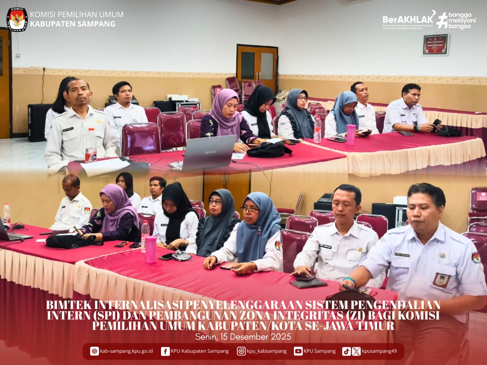 #TemanPemilih.... KPU Kabupaten Sampang telah mengikuti Bimbingan Teknis Internalisasi Penyelenggaraan Sistem Pengendalian Intern (SPI) dan Pembangunan Zona Integritas (ZI) bagi Komisi Pemilihan Umum Kabupaten/Kota se-Jawa Timur yang diselenggarakan oleh KPU Provinsi Jawa Timur secara daring melalui Zoom Meeting di Aula KPU Kabupaten Sampang.