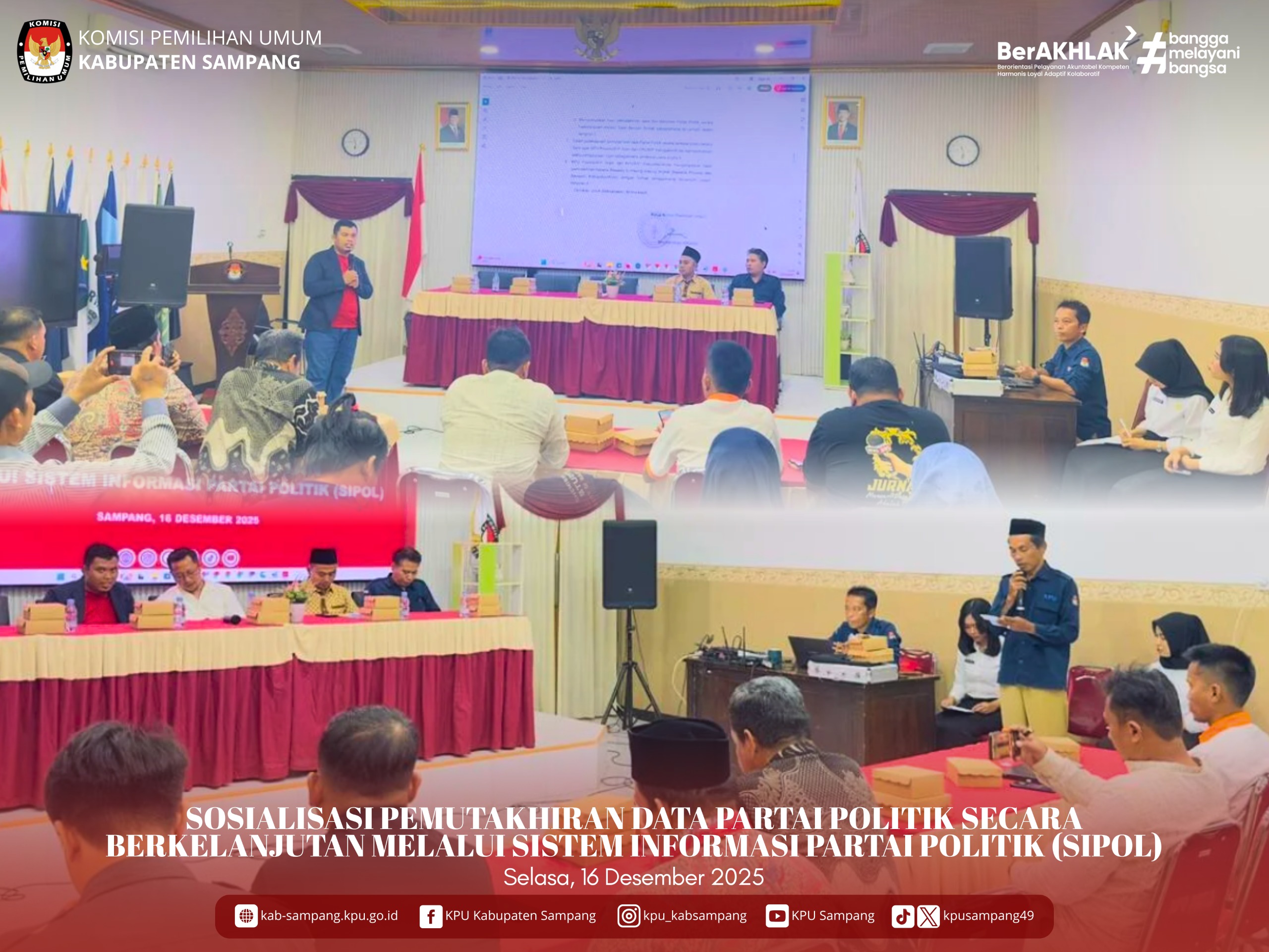 #TemanPemilih.... Pada hari Ini, Selasa, 16 Desember 2025, KPU Kabupaten Sampang telah mengadakan Sosialisasi Pemutakhiran Data Partai Politik Secara Berkelanjutan Melalui Sistem Informasi partai Politik (SIPOL) Secara Luring di Aula KPU Kabupaten Sampang.