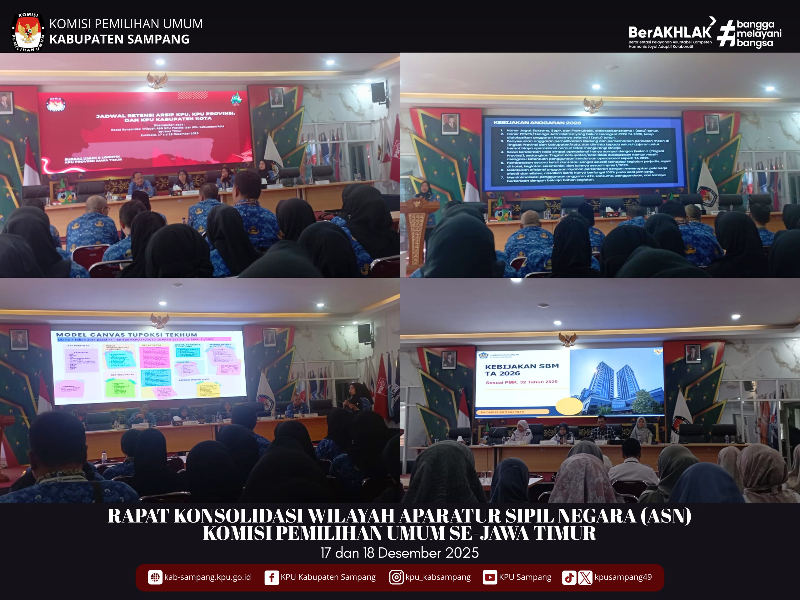 #TemanPemilih.... KPU Kabupaten Sampang telah mengikuti Rapat Konsolidasi Wilayah Aparatur Sipil Negara (ASN) Komisi Pemilihan Umum se-Provinsi Jawa Timur yang diselenggarakan oleh KPU Provinsi Jawa Timur pada Rabu-Kamis, 17-18 Desember 2025, secara luring, bertempat di Kantor KPU Provinsi Jawa Timur, Jalan Raya Tenggilis Nomor 1–3, Surabaya.