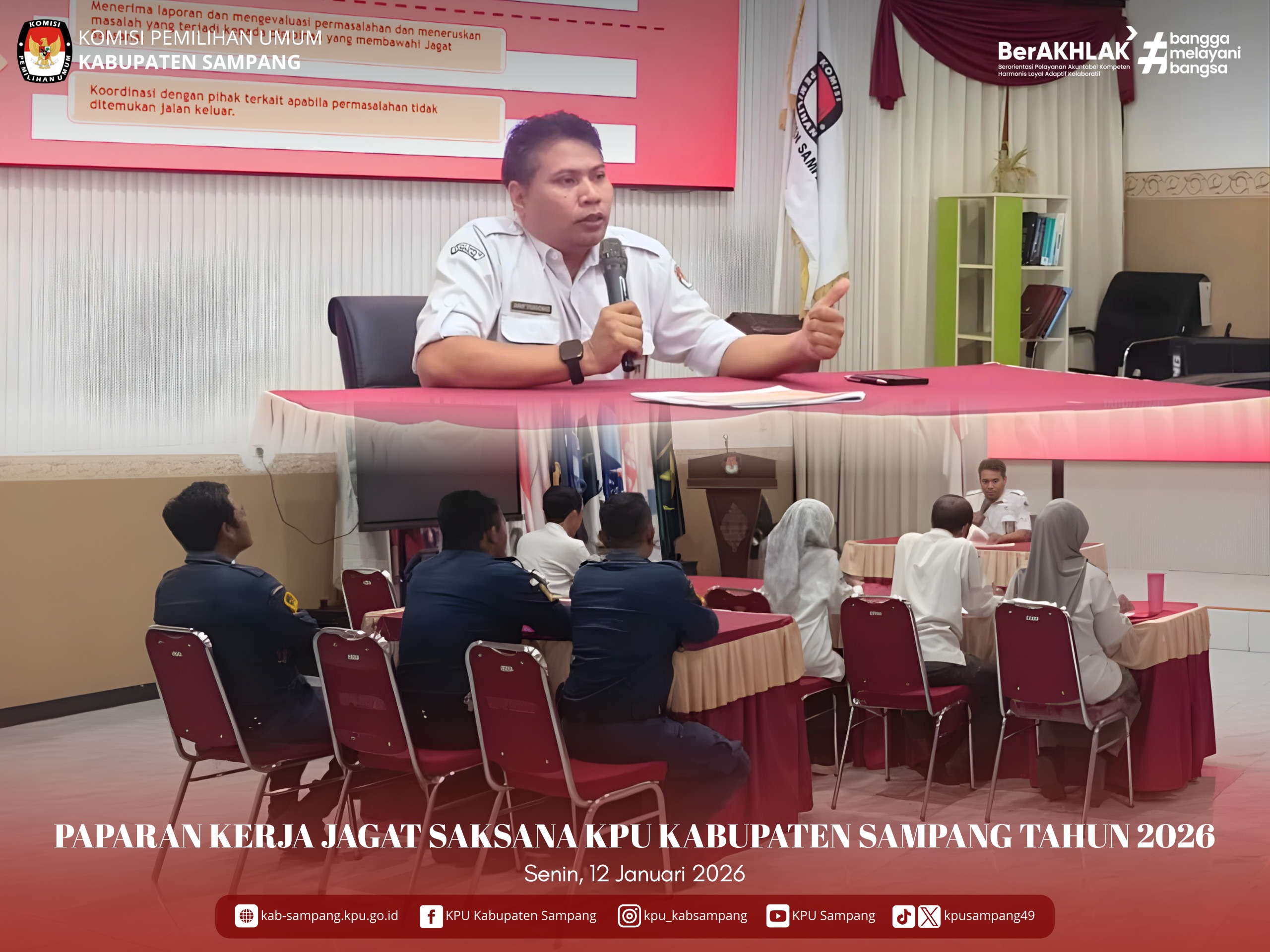 #TemanPemilih.... Hari ini, Senin, 12 Januari 2026, KPU Kabupaten Sampang mengadakan Paparan Kerja Jagat Saksana, secara luring, di Aula KPU Kabupaten Sampang.