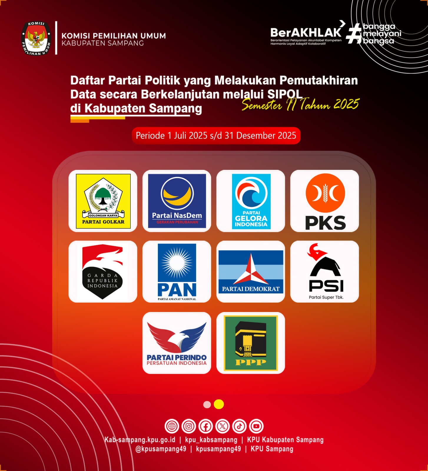#TemanPemilih.... KPU Kabupaten Sampang Menyampaikan Infografis Pemutakhiran Data Partai Politik secara Berkelanjutan melalui SIPOL untuk Semester II Tahun 2025 (1 Juli 2025 sd. 31 Desember 2025) di Tingkat KPU Kabupaten Sampang.
