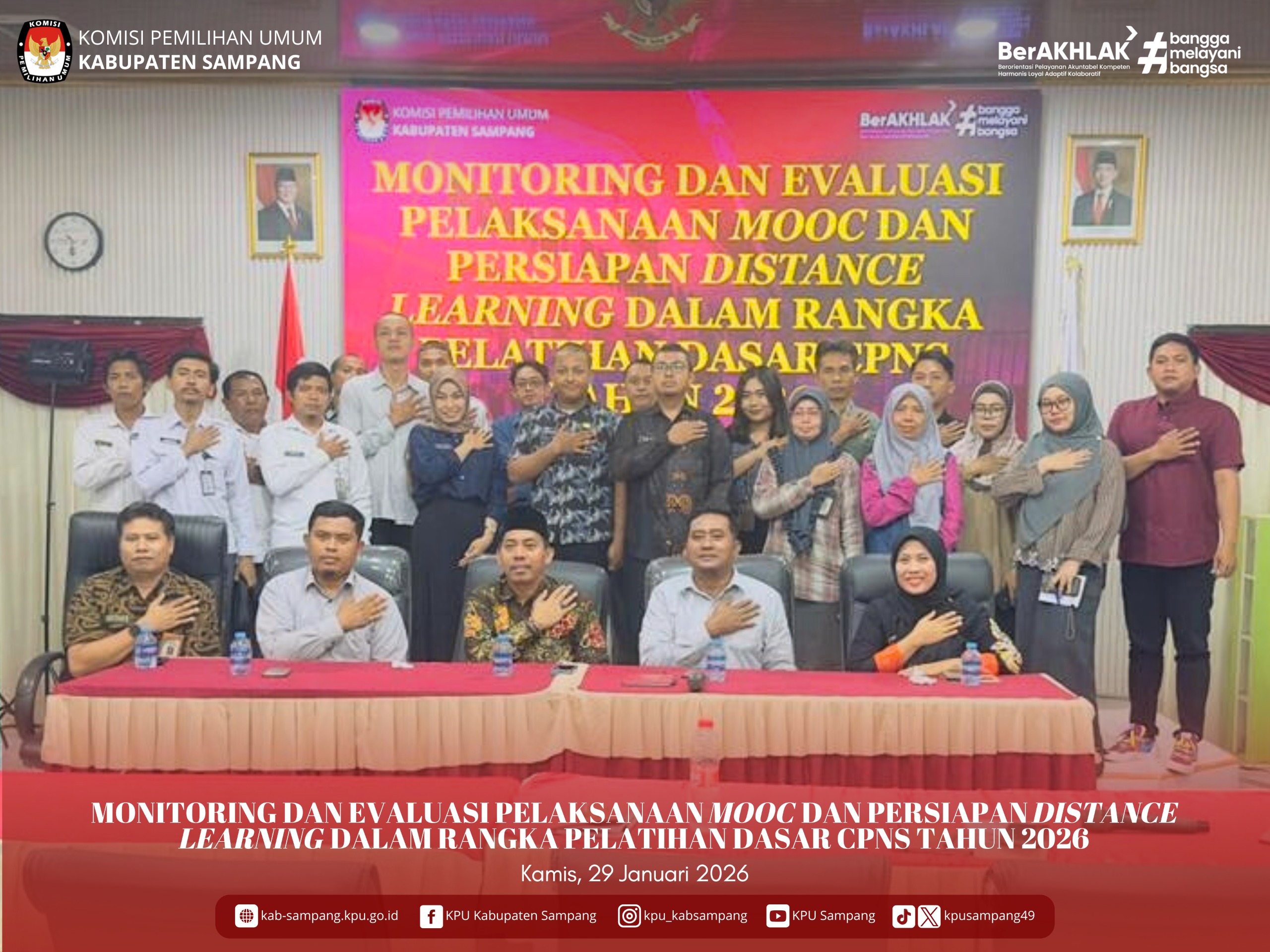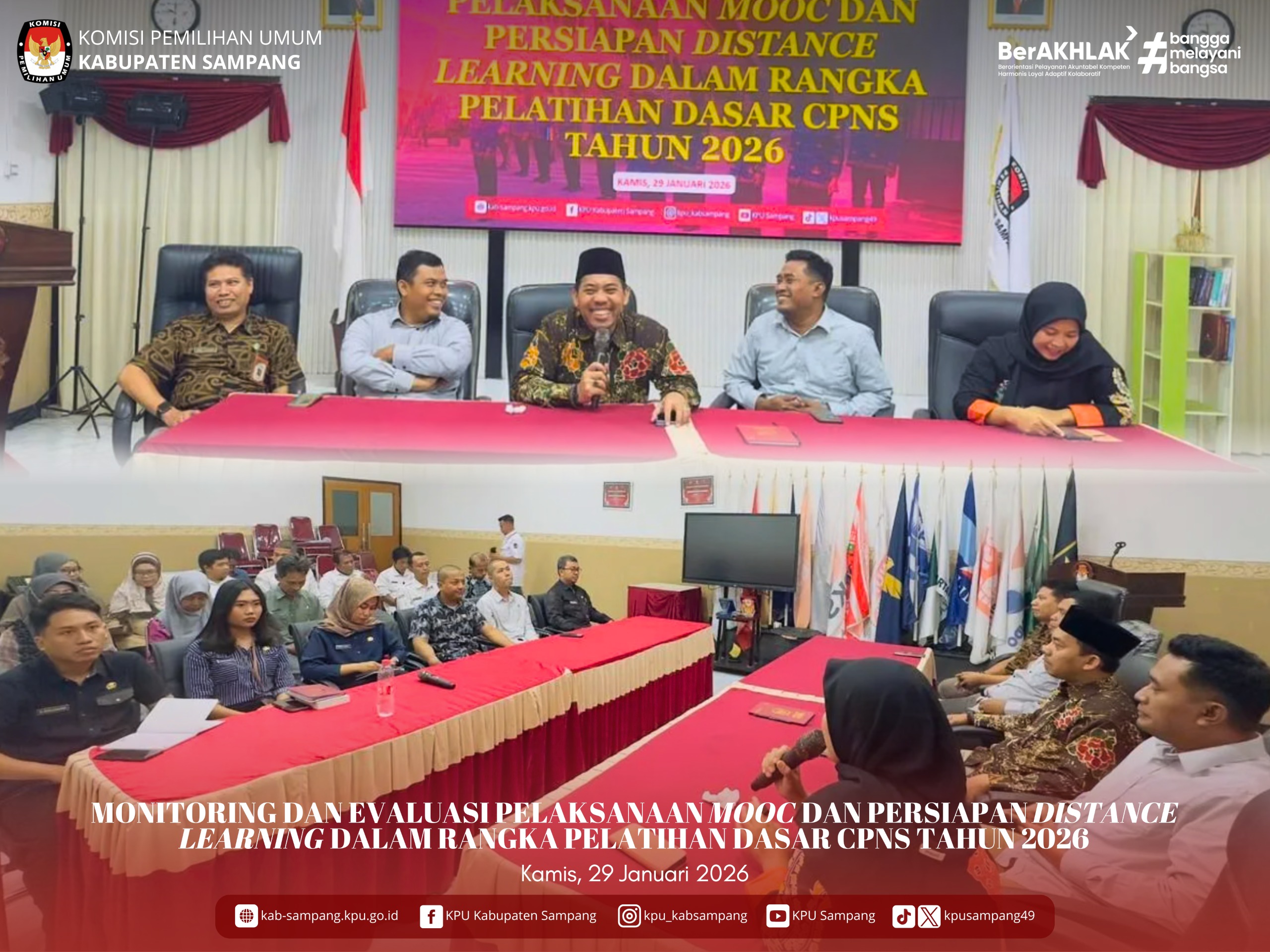#TemanPemilih.... Hari ini, Kamis, 29 Januari 2026, KPU Kabupaten Sampang mengadakan Monitoring Dan Evaluasi Pelaksanaan MOOC Dan Persiapan Distance Learning Dalam Rangka Pelatihan Dasar CPNS Tahun 2026, di Aula KPU Kabupaten Sampang.