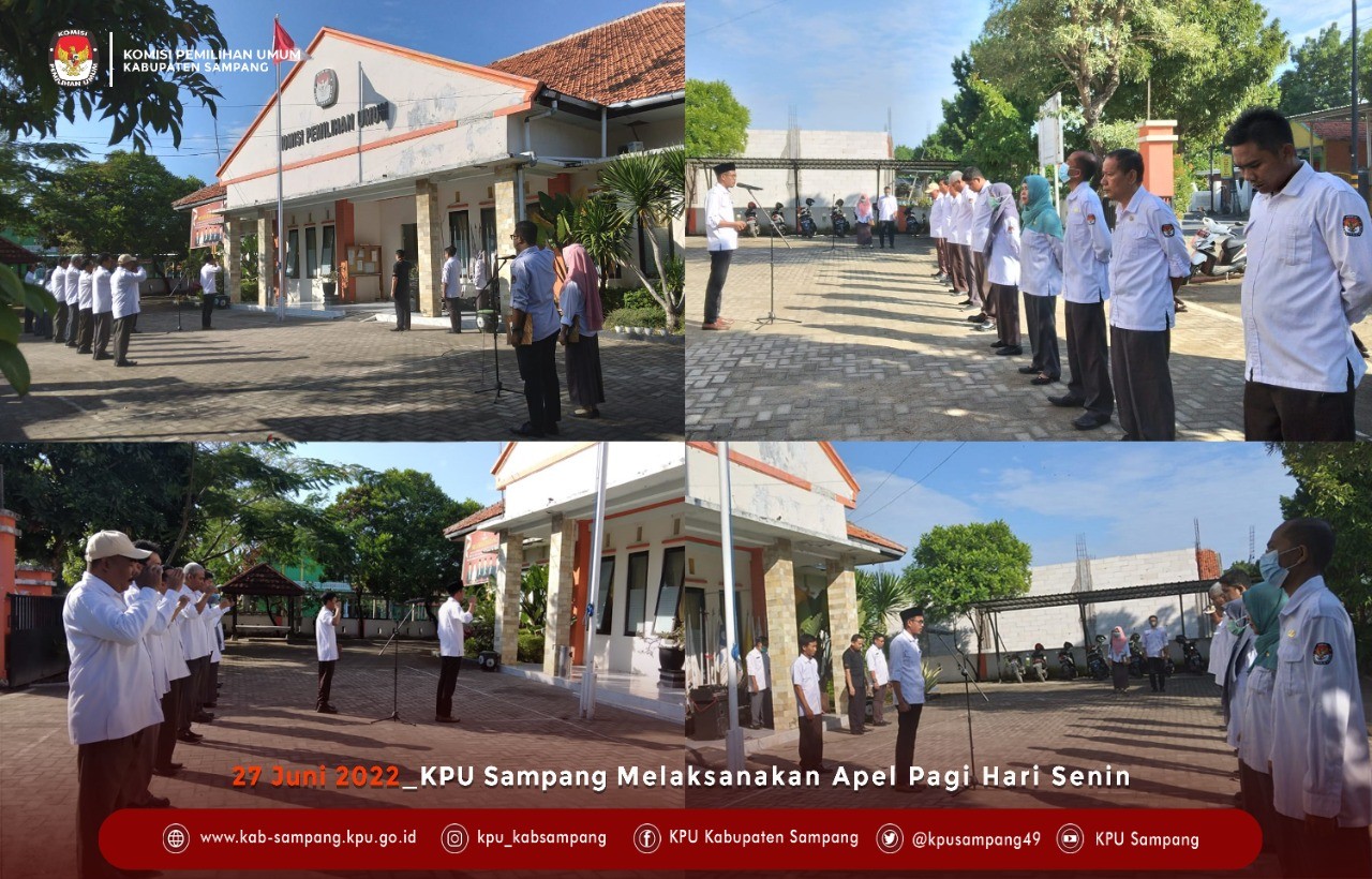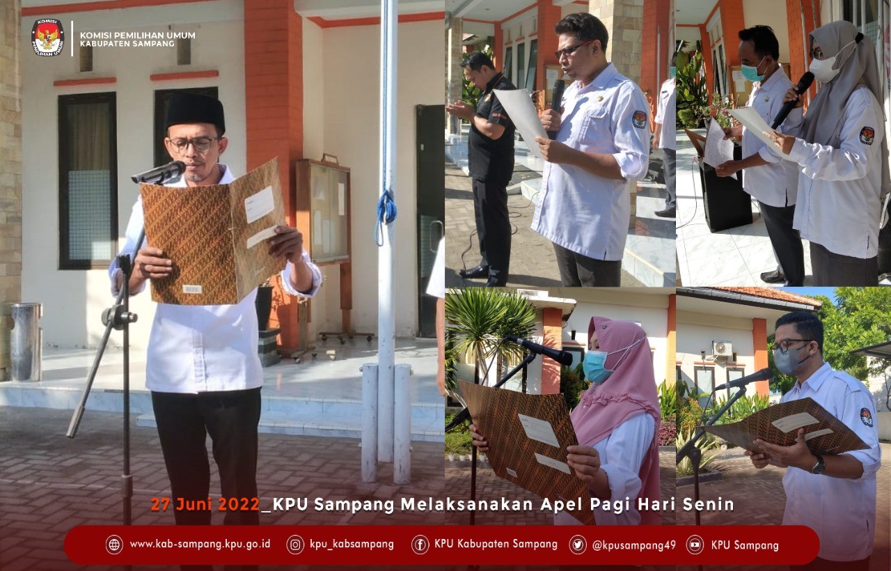 Sampang, kab-sampang@kpu.go.id - Senin (27/06/22), Addy Imansyah (Ketua KPU Kabupaten Sampang) berpesan kepada Jajaran Sekretariat untuk menjaga kebersamaan dengan menerapkan 4-K pada Apel Pagi Hari Senin di Halaman Kantor KPU Kabupaten Sampang.