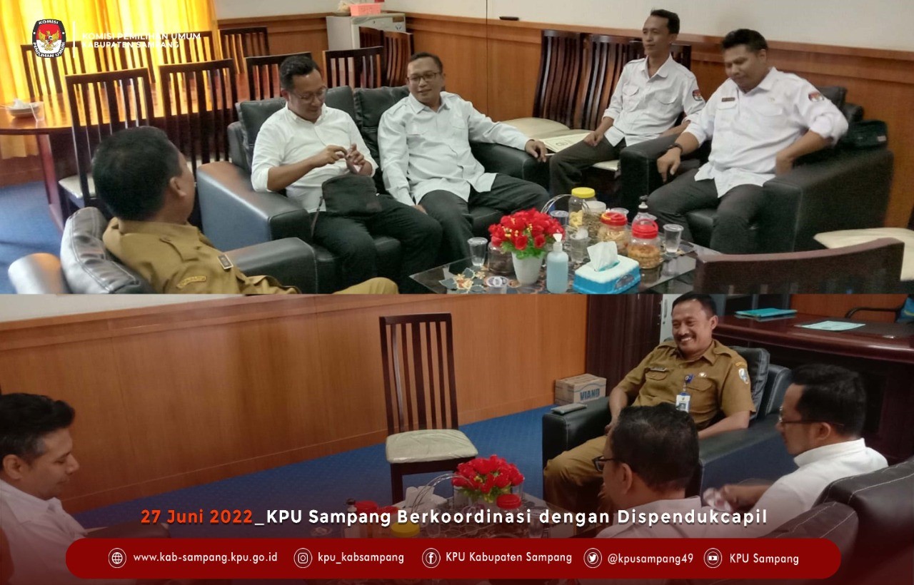 Sampang, kab-sampang@kpu.go.id - Senin (27/06/22), KPU Kabupaten Sampang menyambangi Dispendukcapil (Dinas Kependudukan, dan Pencatatan Sipil) Kabupaten Sampang di Jl. Kusuma Bangsa untuk membahas rencana penyepadanan data pemilih berkelanjutan semester II, hal ini untuk menindaklanjuti surat KPU RI nomor 17 tahun 2022.