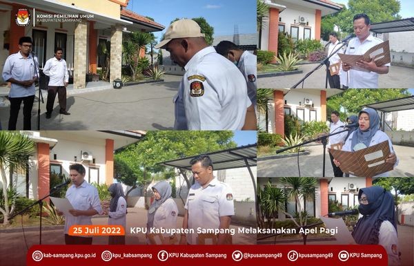 Sampang, kab-sampang.kpu.go.id – Senin pagi, (25/07/22), Ketua KPU Kabupaten Sampang menekankan kepada semua jajaran sekretariat untuk tetap menjaga kebersamaan saat memberiakn amanah pada apel pagi hari senin di Halaman Kantor KPU Kabupaten Sampang.
