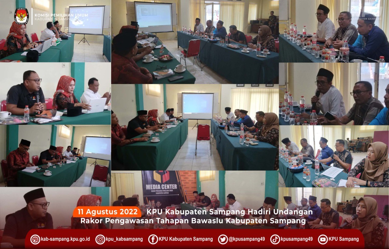 KPU Kabupaten Sampang menghadiri pertemuan tersebut diwakili oleh semua Komisioner, Addy Imansyah (Ketua), Aliyanto (Divisi Rendatin), Siti Aisah (Divisi Teknis Penyelenggaraan), Taufiq Rizqon (Divisi Sosdiklih, Parmas, dan SDM), dan M. Syamsul Arifin (Divisi Hukum dan Pengawasan). Sedangkan Bawaslu Kabupaten Sampang yang menerima KPU Kabupaten Sampang di Aula Kantornya adalah Insiyatun (Ketua Dan Kordiv Pengawasan dan Hubungan Antar Lembaga), Muhalli (Kordiv Penyelesaian Sengketa), Luddin (Kordiv SDM dan Organisasi), Suhariyanto (Kordiv Hukum Data dan Informasi), Yunus Ali Ghafi (Kordiv Penanganan Pelanggaran). (mc)
