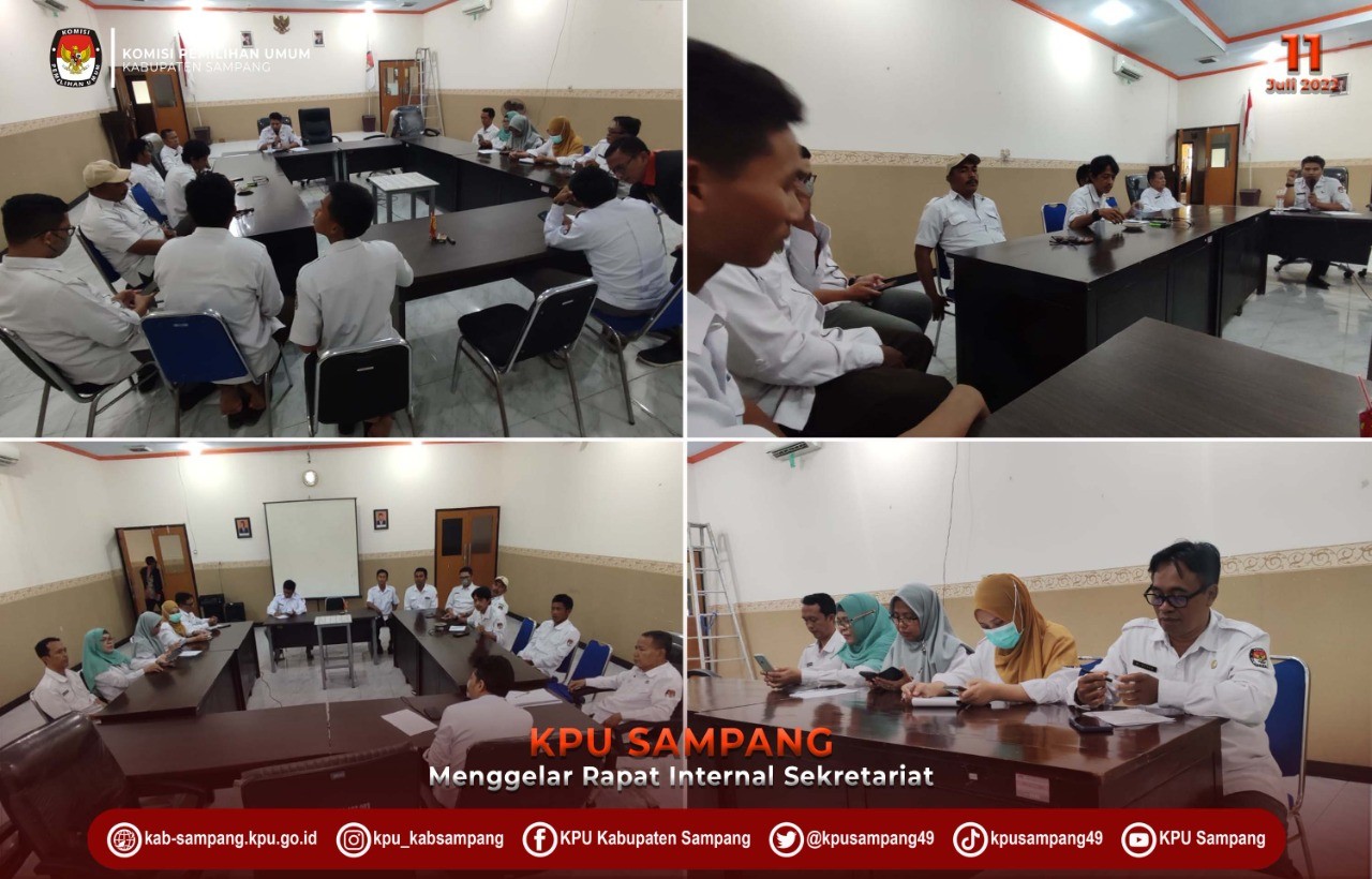 Sampang, kab-sampang.kpu.go.id – Senin (11/07/22) siang, Sekretariat KPU Kabupaten Smapang menggelar rapat internal. Dalam rapat yang dipimpin oleh Plt. Sekretaris KPU Kabupaten Sampang tersebut membahas persiapan pelaksanaan kagiatan pendidikan pemilih KPU Provisni Jawa Timur di Kabupaten Sampang yang akan diselenggarakan pada tanggal 14 Juli 2022 di Aula KPU Kabupaten Sampang.