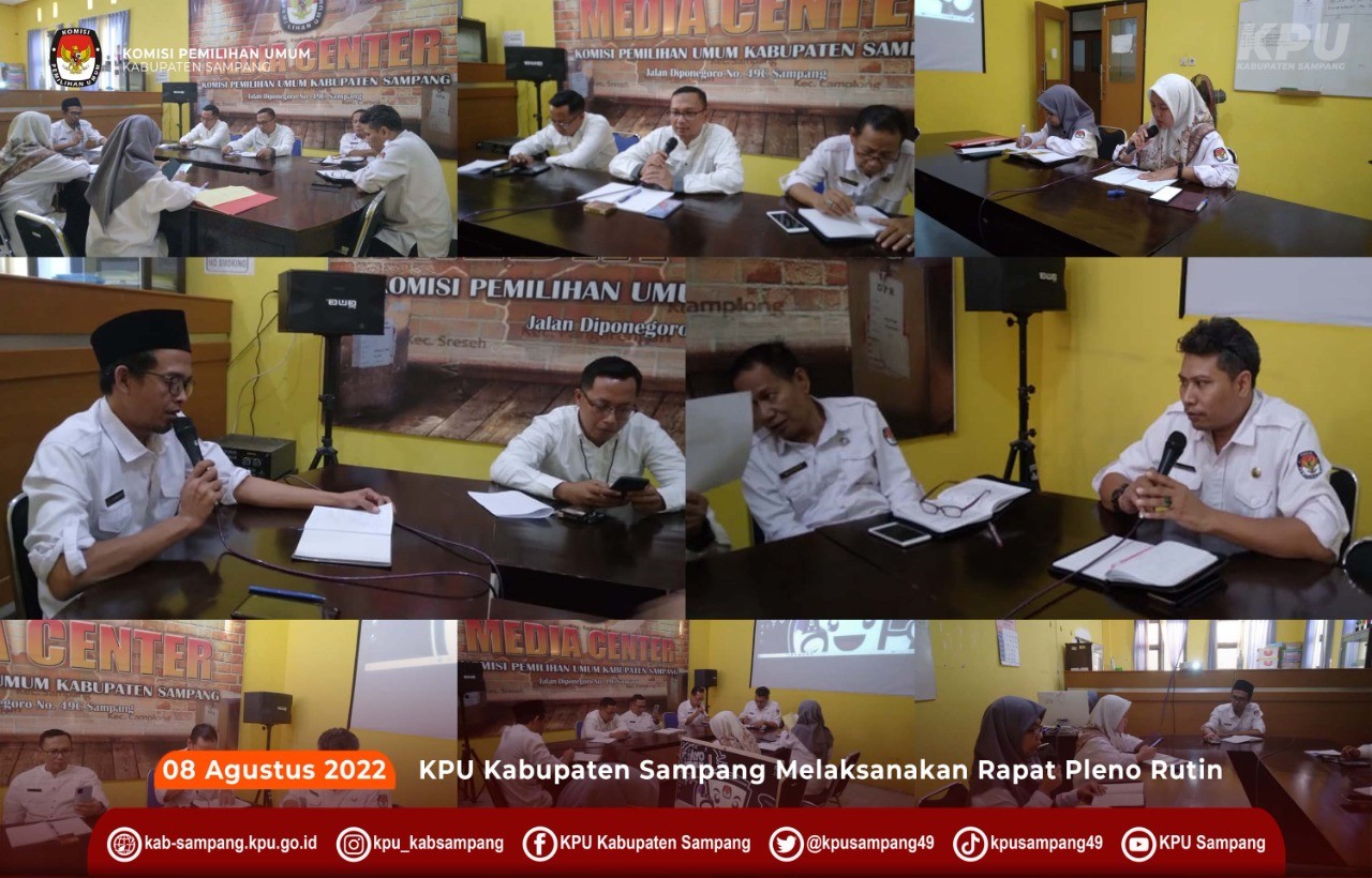 Sampang, kab-sampang.kpu.go.id – KPU Kabupaten Sampang menggelar rapat pleno rutin, Senin (08/08/22) pagi di Media center KPU Sampang. Rapat pleno yang dimulai pada pukul 09.00 WIB tersebut membahas evaluasi pelaksanaan kegiatan, dan persiapan kegiatan yang akan dilaksanakan.