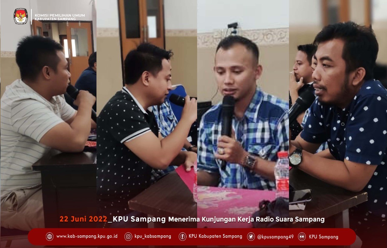 Sampang, kab-sampang.kpu.go.id – KPU Kabupaten Sampang terbuka untuk bekerja sama dengan semua pihak untuk mensukseskan Pemilu Serentak Tahun 2024. Hal itu disampaikan oleh Ketua KPU Kabupaten Sampang kepada Tim Radio Suara Sampang saat menawarkan kerjasama penyiaran kepada KPU Kabupaten Sampang (22/06/22).