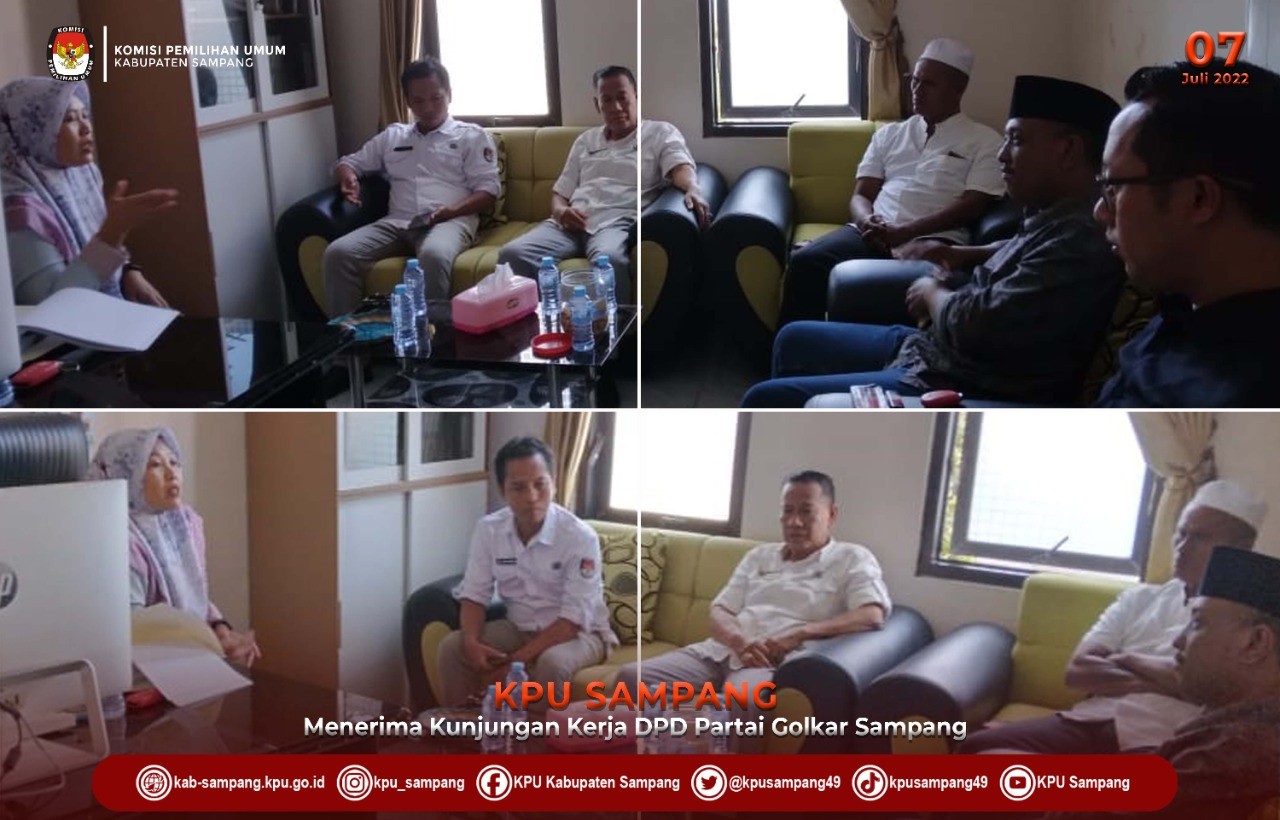 Sampang, kab-sampang@kpu.go.id - Kamis (07/07/22), Divisi Teknis Penyelenggaraan KPU Kabupaten Sampang, Siti Aisah menerima kunjungan kerja DPD Partai Golkar Kabupaten Sampang di ruang kerjanya. DPD Partai Golkar Kabupaten Sampang membawa agenda koordinasi proses PAW (pergantian antar waktu) DPRD Kabupaten Sampang Fraksi Partai Golkar. Hal itu dilakukan menyusul berpulangnya Anggota DPRD Kabupaten Sampang Fraksi Partai Golkar, M. Djaikun.