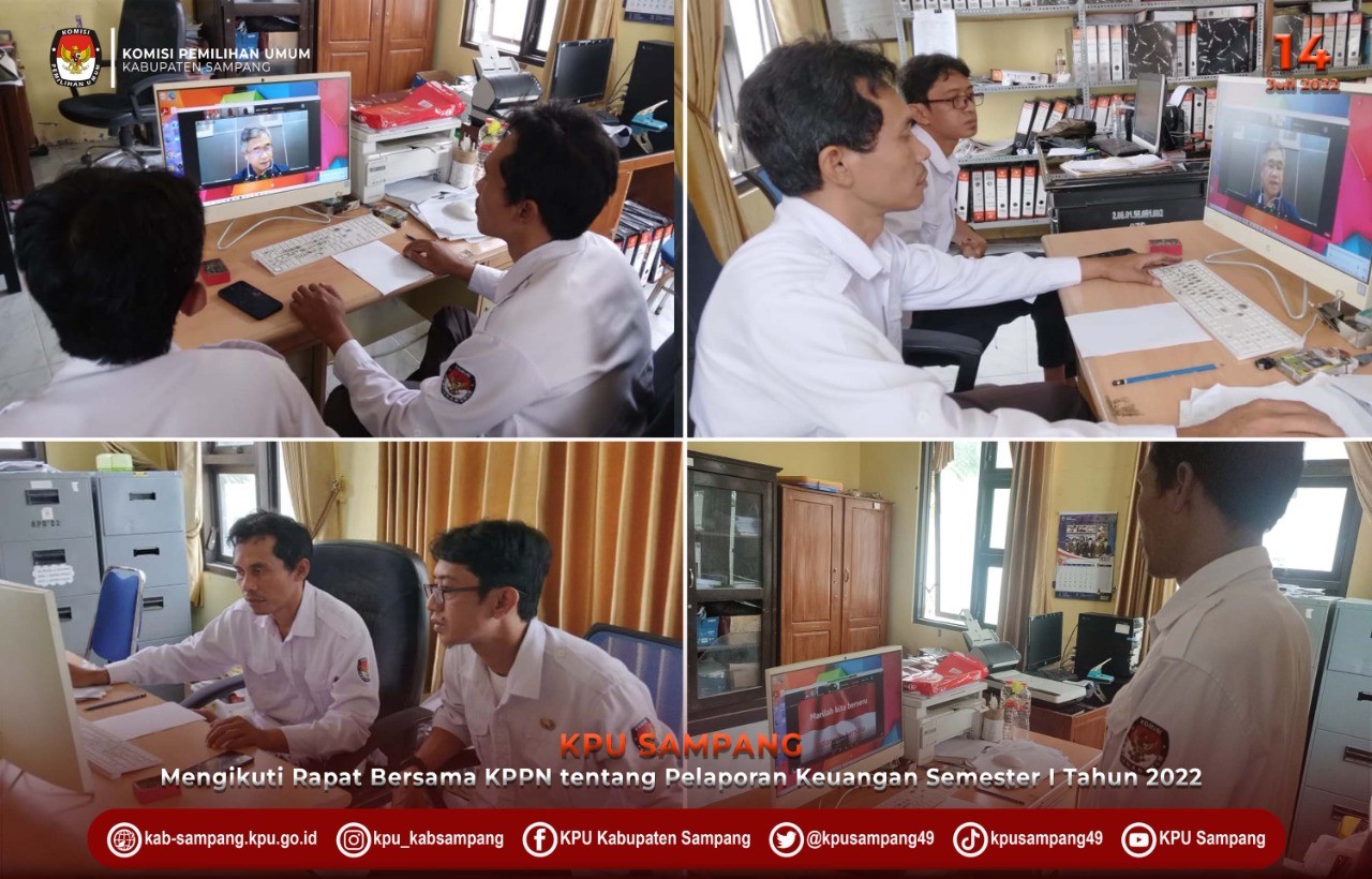 Sampang, kab-sampang.kpu.go.id – Kamis (14/07/22) pagi KPU Kabupaten Sampang mengikuti rapat bersama KPPN (Kantor Pelayanan Perbendaharaan Negara) secara daring. Rapat tersebut membahas pelaporan keuangan semester I tahun 2022. Kegiatan tersebut bertujuan agar satuan kerja bisa membuat laporan secara online. Dalam rapat tersebut dijelaskan oleh narasumber yang berasal dari KPPN Pamekasan bahwa laporan semua satuan kerja dilakukan secana online.