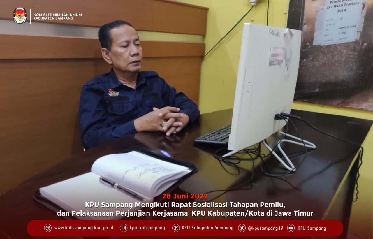 Sampang, kab-sampang@kpu.go.id - Selasa (28/06/22), KPU Kabupaten Sampang memenuhi undangan KPU Provinsi Jawa Timur untuk mengikuti Rapat Sosialisasi Tahapan Pemilu, dan Pelaksanaan Perjanjian Kerjasama KPU Kabupaten/Kota se-Jawa Timur.