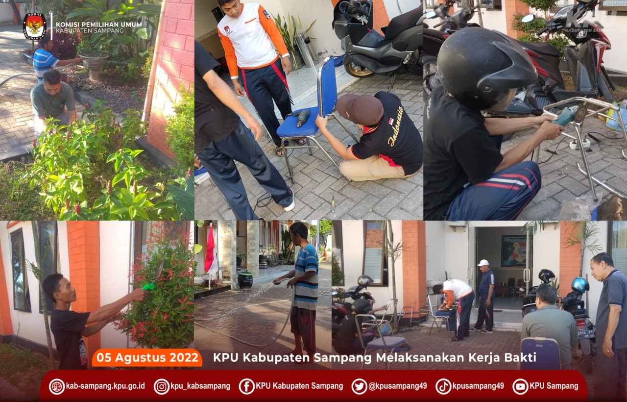 Sampang, kab-sampang.kpu.go.id – Jumat (05/08/22) pagi, Sekretariat KPU Kabupaten Sampang melaksanakan kerja bakti membersihkan taman dan membuat kursi dan meja dari bekas kursi yang rusak.