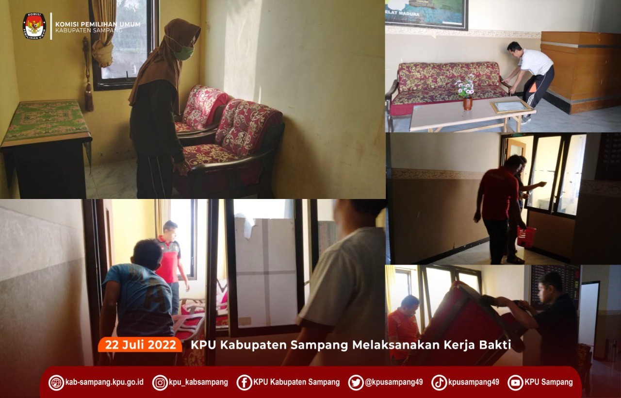 Sampang, kab-sampang.kpu.go.id – KPU Kabupaten Sampang Kembali melaksanakan kerja bakti, Jumat (22/07/22). Kerja bakti kali ini untuk menyediakan ruang laktasi dalam pelaksanaan tahapan pemilu serentak tahun 2024 terdekat, yakni pendaftaran, verifikasi, dan penetapan partai politik peserta pemilu serentak tahun 2024 yang akan dimulai sejak tanggal 29 Juli 2022 mendatang.