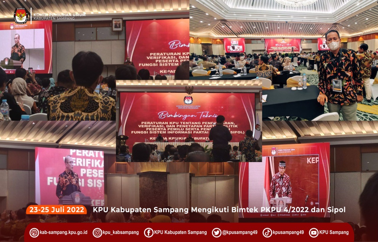 Jakarta, kab-sampang.kpu.go.id – Sabtu (23/07/22), KPU Kabupaten Sampang mengikuti Bimbingan Teknis Peraturan KPU tentang Pendaftaran, Verifikasi, dan Penetapan Partai Politik Peserta Pemilu 2024 dan Pengenalan Sistem Informasi Partai Politik kepada KPU/KIP Kabupaten/Kota yang diselenggarakan di Grand Hotel Sahid Jaya Jakarta.