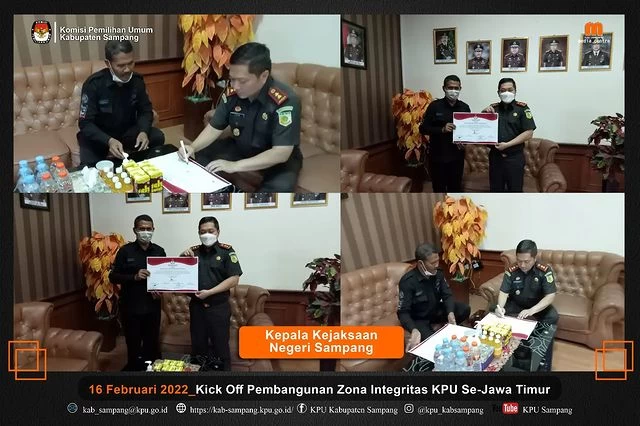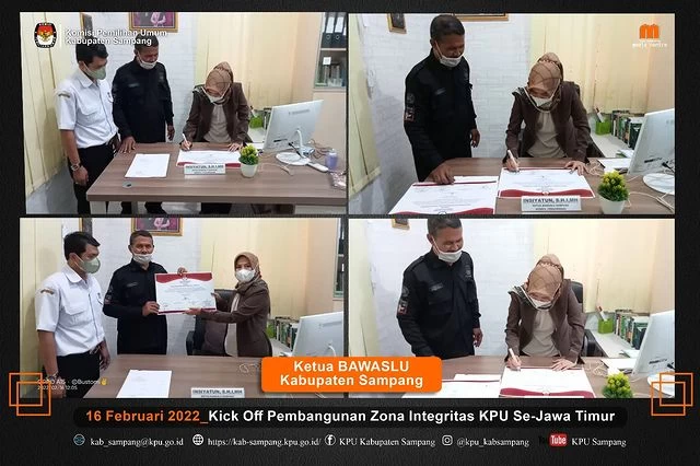 Penandatangan dilaksanakan bersamaan dengan kegiatan kick off Pembangunan ZI secara virtual yang diselenggarakan oleh @kpu_jatim bersama seluruh Ketua/Anggota KPU dan forkopimda/lembaga lainnya di 38 Kab/Kota Se Jawa Timur, Rabu pagi pukul 10.00 WIB (16/2/2022).
