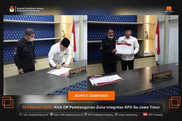 Komisi Pemilihan Umum (KPU) Kabupaten Sampang menandatangani piagam pencanangan pembangunan Zona Integritas (ZI) di Aula kantor KPU, Jl Diponegoro No 49 C Sampang.