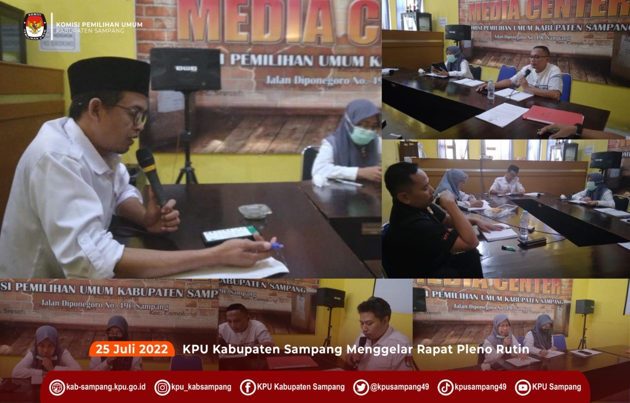 KPU Kabupaten Sampang tetap menjaga kontinuitas melaksanakan rapat pleno rutiin sesuai Pasal 63 Ayat (4) Peraturan Komisi Pemilihan Umum Nomor 8 Tahun 2019 tentang Tata Kerja Komisi Pemilihan Umum, Komisi Pemilihan Umum Provinsi dan Komisi Pemilihan Umum Kabupaten/Kota, sebagaimana telah beberapa kali diubah terakhir dengan Peraturan Komisi Pemilihan Umum Nomor 21 Tahun 2020 tentang Perubahan Kedua atas Peraturan Komisi Pemilihan Umum Nomor 8 Tahun 2019 tentang Tata Kerja Komisi Pemilihan Umum, Komisi Pemilihan Umum Provinsi dan Komisi Pemilihan Umum Kabupaten/Kota, KPU Kabupaten Sampang menggelar rapat pleno rutin paling sedikit 1 (satu) kali setiap minggu. (mc)