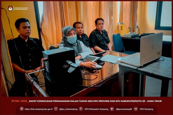 Hari ini, KPU Kabupaten Sampang mengikuti Rapat Konsolidasi Pengamanan Dalam Tahun 2022 pada Sekretariat KPU Provinsi Jawa Timur dan KPU Kabupaten/Kota se-Jawa Timur. Acara yang dihadiri oleh seluruh Sekretaris, Kasubag Keuangan, Umum dan Logistik, dan Anggota Pengamanan KPU Provinsi dan KPU Kabupaten Kota se-Jawa Timur tersebut diadakan oleh Bagian Pengamanan Dalam KPU RI.