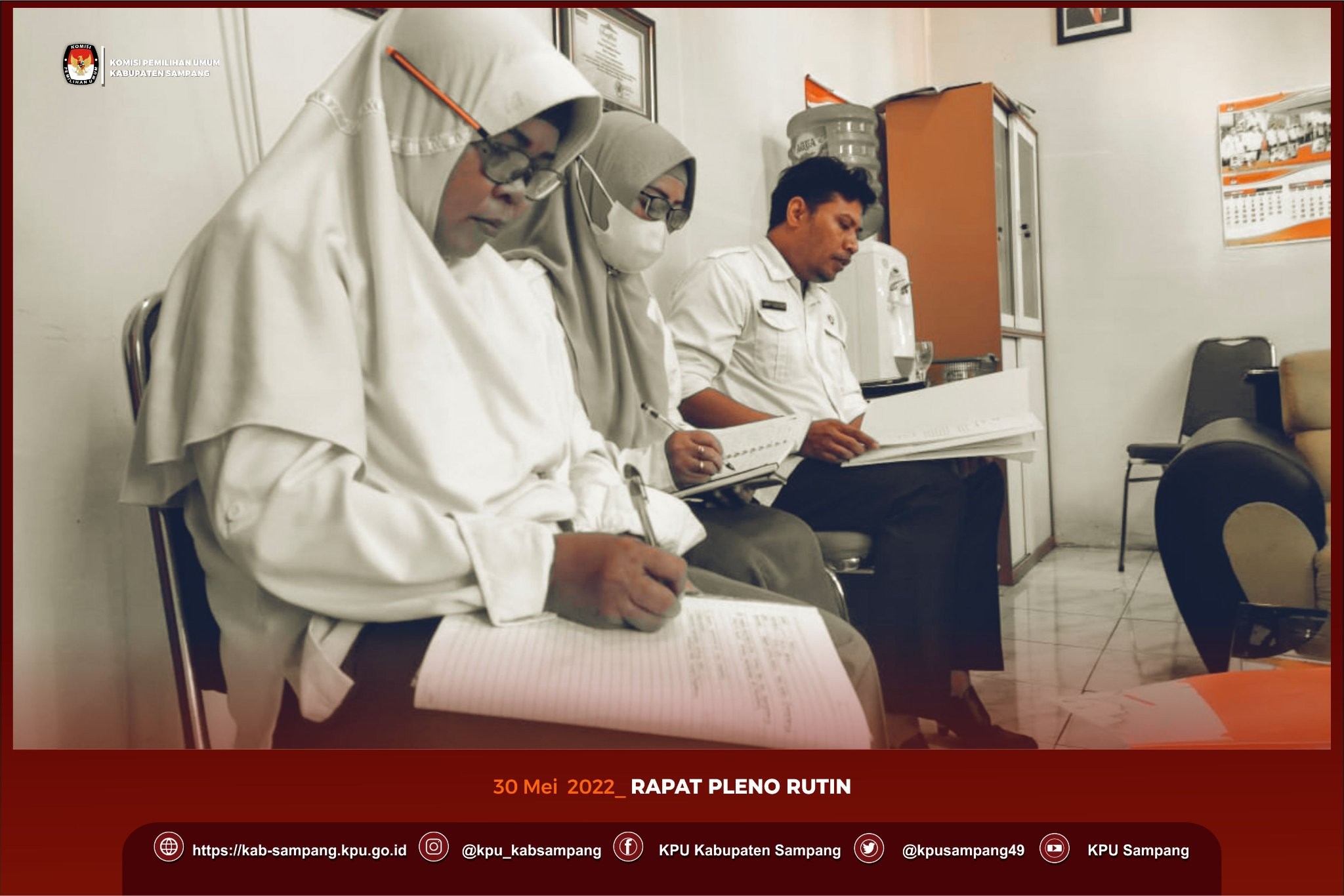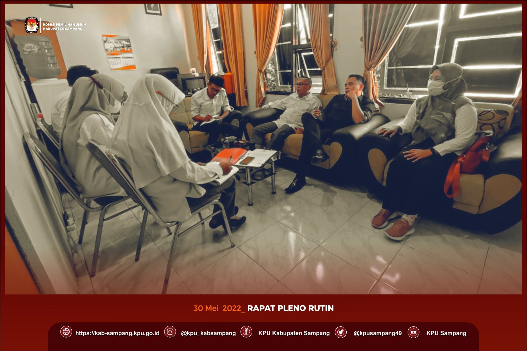 Sampang, kab-sampang.kpu.go.id – Sesuai Pasal 63 Ayat (4) Peraturan Komisi Pemilihan Umum Nomor 8 Tahun 2019 tentang Tata Kerja Komisi Pemilihan Umum, Komisi Pemilihan Umum Provinsi dan Komisi Pemilihan Umum Kabupaten/Kota, sebagaimana telah beberapa kali diubah terakhir dengan Peraturan Komisi Pemilihan Umum Nomor 21 Tahun 2020 tentang Perubahan Kedua atas Peraturan Komisi Pemilihan Umum Nomor 8 Tahun 2019 tentang Tata Kerja Komisi Pemilihan Umum, Komisi Pemilihan Umum Provinsi dan Komisi Pemilihan Umum Kabupaten/Kota, KPU Kabupaten Sampang menggelar rapat pleno rutin paling sedikit 1 (satu) kali setiap minggu.