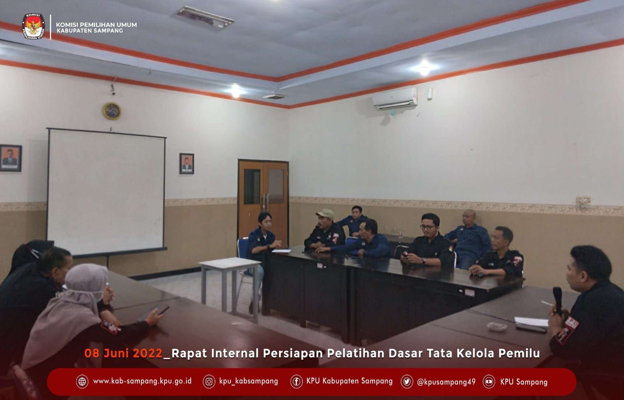 Sampang, kab-sampang.kpu.go.id - Kamis (09/06/22), ASN KPU Kabupaten Sampang akan mengikuti Pelatihan Dasar Tata Kelola Pemilu yang diadakan oleh KPU Provinsi Jawa Timur di Hotel Narita di Surabaya. Untuk mempersiapkan pelatihan tersebut, Plt. Sekretaris KPU Kabupaten Sampang, Arif Yudiono mengumpulkan Kasubag dan Staf yang akan mengikuti pelatihan besok dalam rapat internal.
