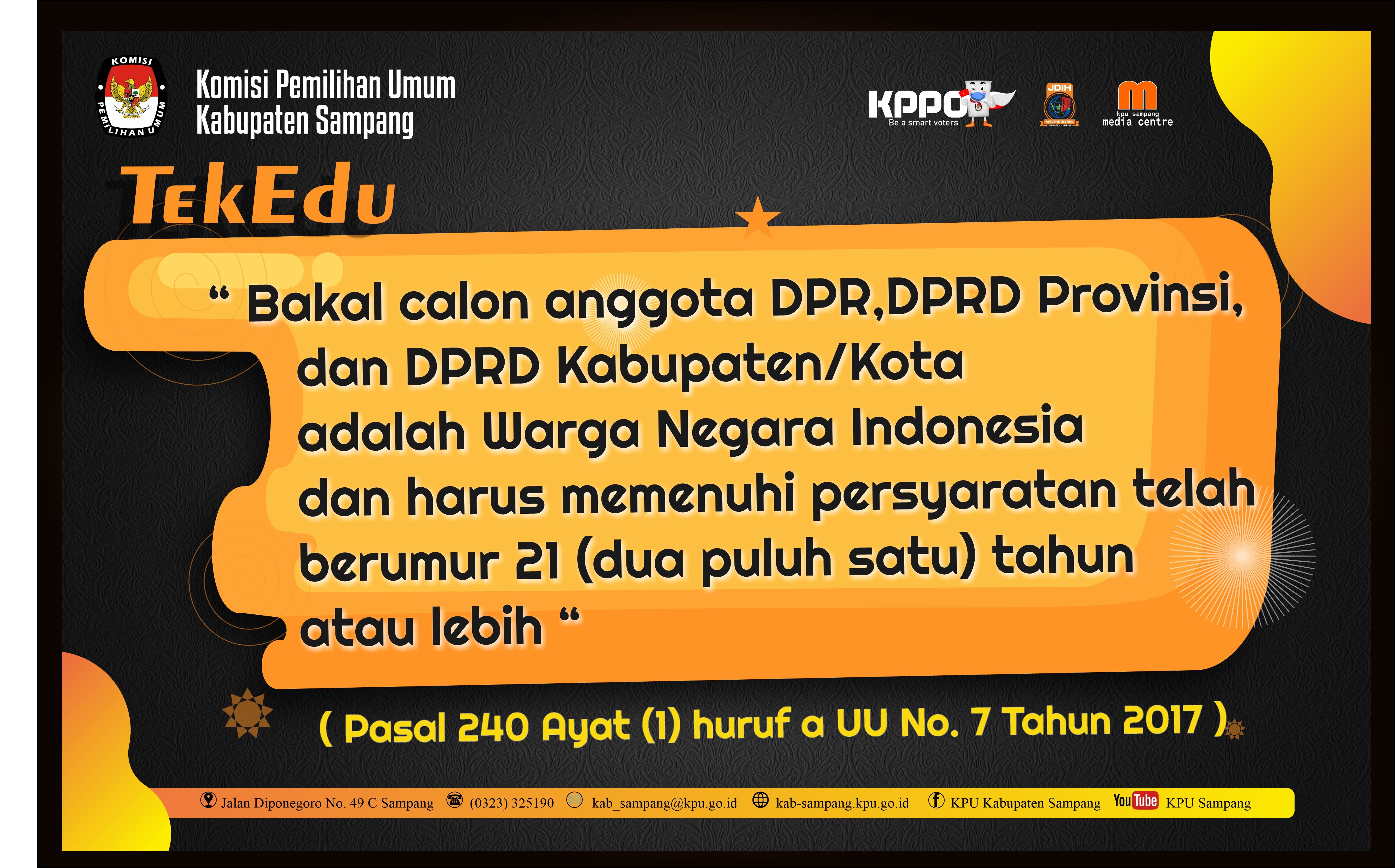 Hai #TemanPemilih, Tema TekEdu sebelumnya tentang Verifikasi Partai Politik, maka Tema TekEdu minggu ini beralih pada tugas lainnya dari Divisi Teknis Penyelenggaraan yaitu Pencalonan Peserta Pemilu. Adakah #TemanPemilih Gen Z dan Millenial yang telah berumur 21 Tahun berminat mencalonkan diri jadi anggota DPR? Yuk share di comment