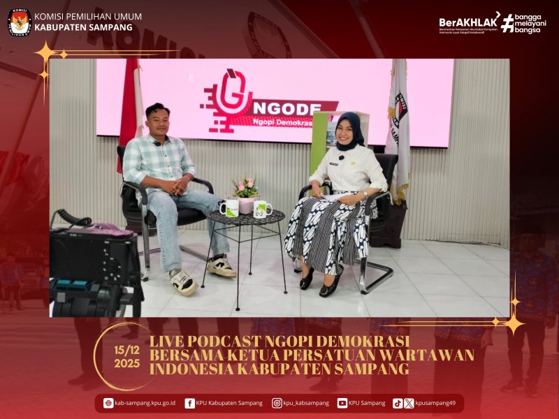 #TemanPemilih... KPU Kabupaten Sampang telah melakukan LIVE Podcast KPU Kabupaten Sampang, Podcast Ngopi Demokrasi (NGODE) Episode #7, pada Hari ini, Senin, 15 Desember 2025. Podcast Ngopi Demokrasi kali ini mengangkat tema "Jurnalisme dan Kotak Suara" dengan narasumber yang sangat spesial pada kesempatan kali ini, yaitu, Bapak Hanggara Pratama S. Beliau merupakan Ketua Persatuan Wartawan Indonesia (PWI) Kabupaten Sampang.