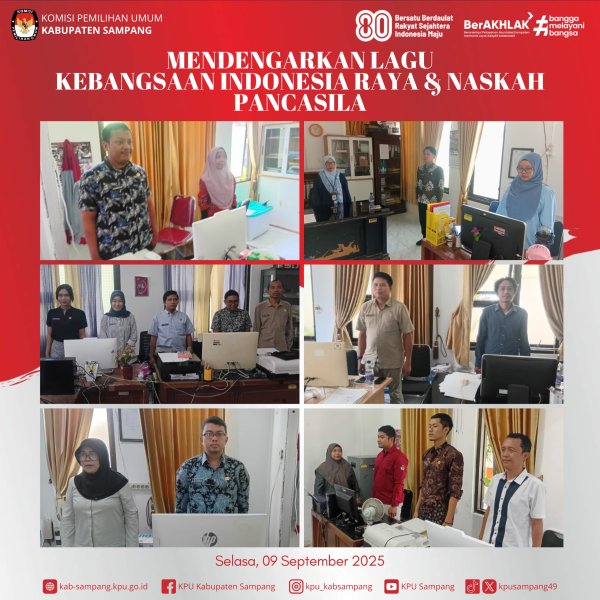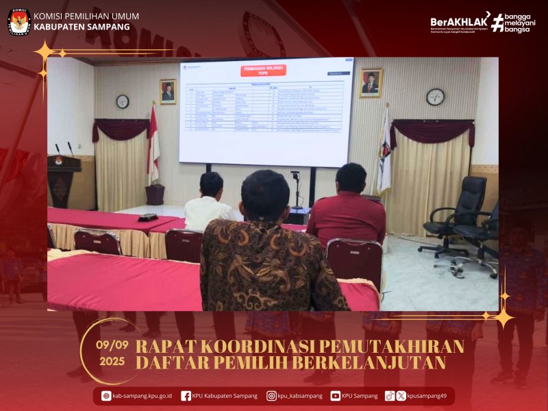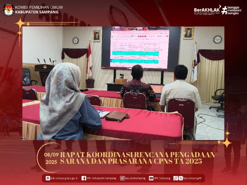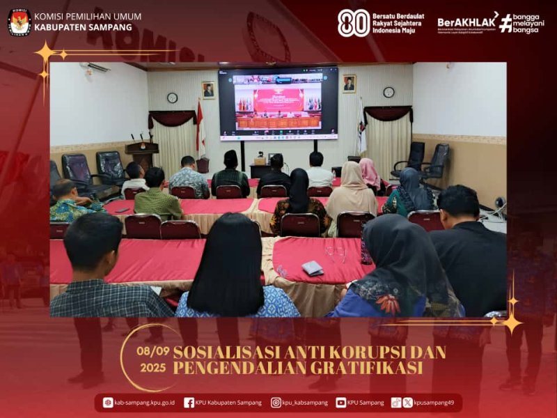 #TemanPemilih.... Hari ini Senin, 08 September 2025, KPU Kabupaten Sampang mengikuti Sosialisasi Antikorupsi dan Pengendalian Gratifikasi di KPU RI, KPU Provinsi, dan KPU Kabupaten/Kota secara daring melalui zoom meeting di Aula KPU Kabupaten Sampang.