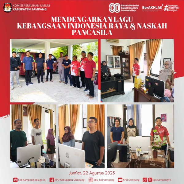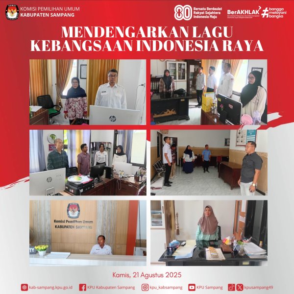 #TemanPemilih.... hari ini Kamis, 21 Agustus 2025, KPU Kabupaten Sampang mendengarkan Lagu Kebangsaan Indonesia Raya di kantor KPU Kabupaten Sampang