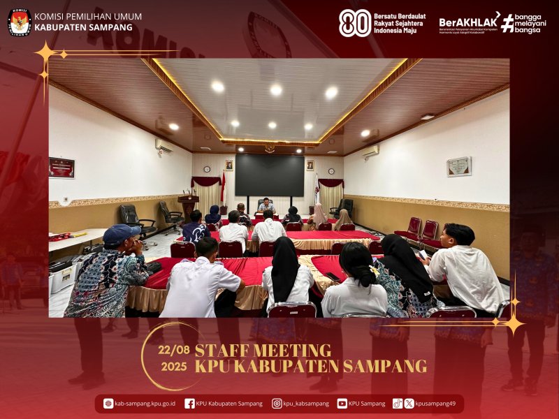 #TemanPemilih..... hari ini Jum'at, 22 Agustus 2025, KPU Kabupaten Sampang melaksanakan kegiatan Staff Meeting di Aula Kantor KPU Kab. Sampang