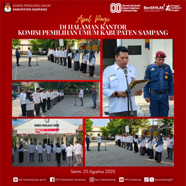#TemanPemilih..... Hari ini, Senin, 25 Agustus 2025, KPU Kabupaten Sampang melaksanakan kegiatan Apel Pagi di halaman kantor KPU Kabupaten Sampang.