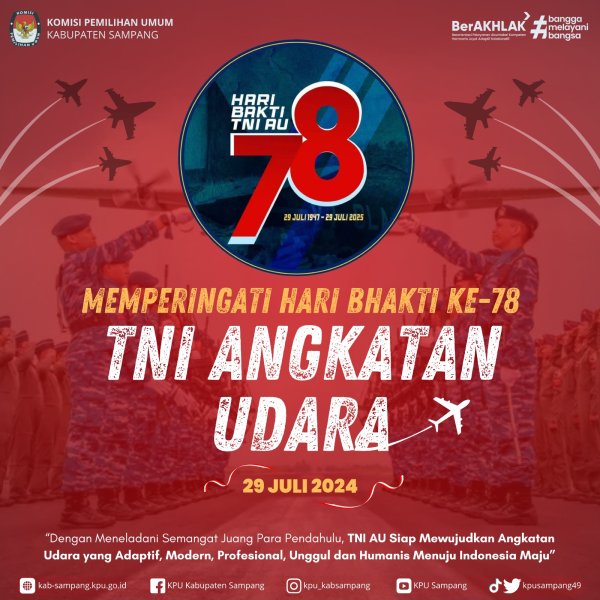 #TemanPemilih.... Segenap jajaran KPU Kabupaten Sampang mengucapkan Selamat Hari Bhakti TNI Angkatan Udara ke-78, 29 Juli 2025