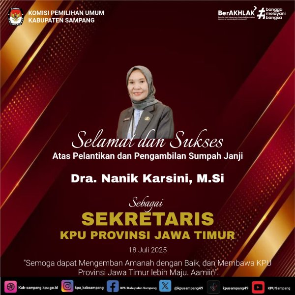 #TemanPemilih.... Segenap jajaran KPU Kabupaten Sampang mengucapkan Selamat Hari Bhakti Adhyaksa ke-65, 22 Juli 2025