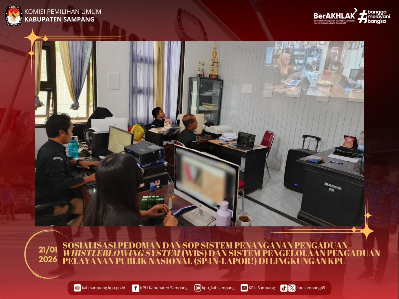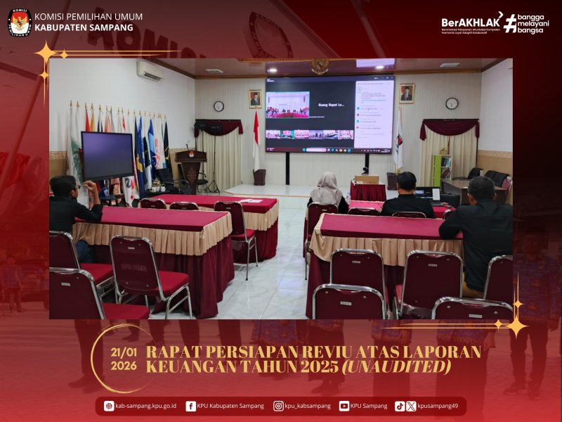 #TemanPemilih.... Hari ini, Rabu, 21 Januari 2026, KPU Kabupaten Sampang Mengikuti Rapat Persiapan Reviu Laporan Keuangan Tahun 2025 (Unaudited), secara daring, di Aula KPU Kabupaten Sampang.