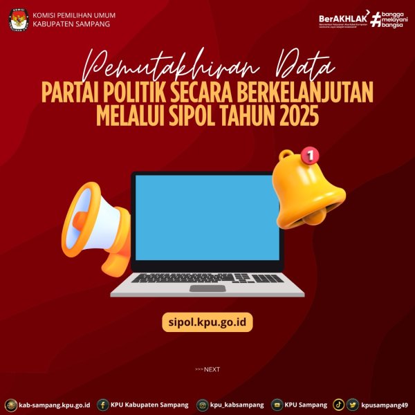 ????Woro-woro.. Halo #TemanPemilih..... hari ini Rabu, 2 Juli 2025, KPU Kabupaten Sampang kali ini menginformasikan Partai Politik dapat melakukan Pemutakhiran Data Partai Politik secara berkelanjutan melalui SIPOL Tahun 2025 lho!! Kalian perlu tahu Teman Pemilih bahwa sebagaimana Peraturan Komisi Pemilihan Umum Nomor 11 Tahun 2022 tentang Perubahan atas Peraturan Komisi Pemilihan Umum Nomor 4 Tahun 2022 tentang Pendaftaran, Verifikasi, dan Penetapan Partai Politik Peserta Pemilihan Umum Anggota Dewan Perwakilan Rakyat dan Dewan Perwakilan Rakyat Daerah, disebutkan Partai Politik dapat melakukan Pemutakhiran Data Partai Politik secara Berkelanjutan melalui Sipol Tahun 2025. Nah data-data yang perlu dimutakhirkan antara lain sebagai berikut: ???? Kepengurusan ???? Keterwakilan perempuan ???? Keanggotaan ???? Domisili kantor tetap Pingin tahu lebih lengkap?! Yukk langsung aja simak informasi postingan ini.. Dan jangan lupa pastikan tidak ada info yang terlewat ya.. Semoga bermanfaat.. Jangan lupa like, share dan komen yah.. #KPUMelayani
